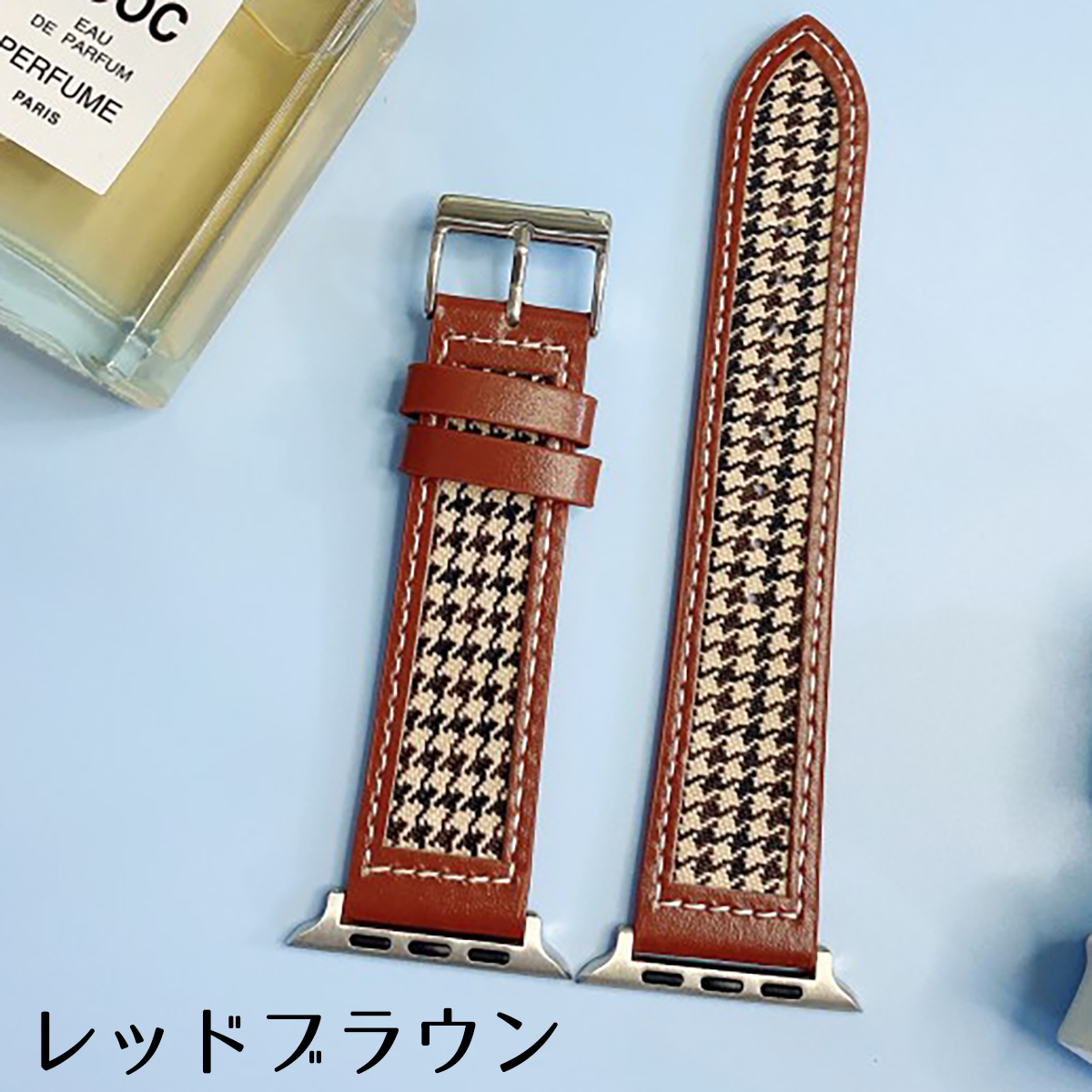 【AFP】アップルウォッチ バンド ベルト 革 千鳥 本革レザー レッドブラウン バイカラー 38/40/41mm 交換ベルト apple watch