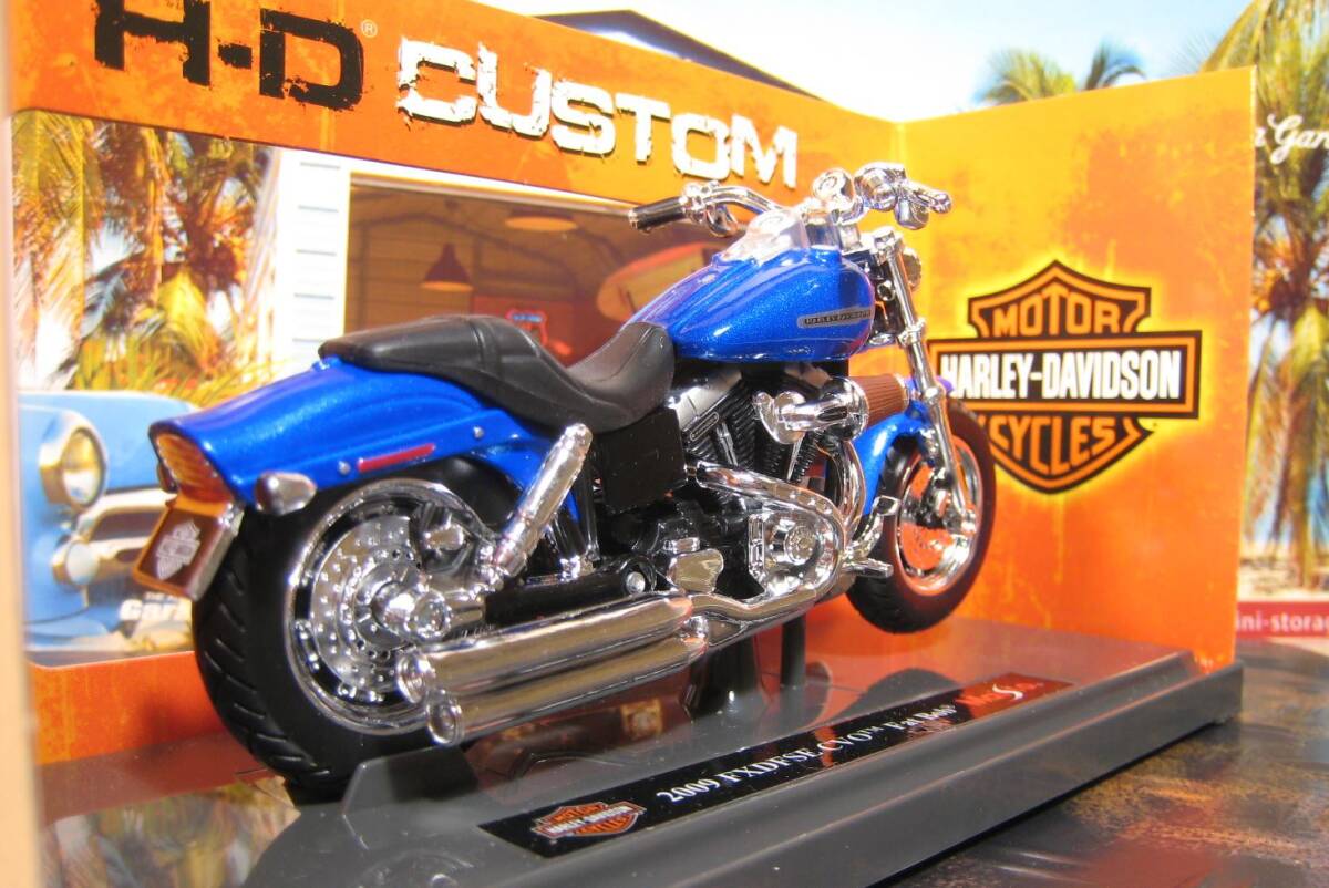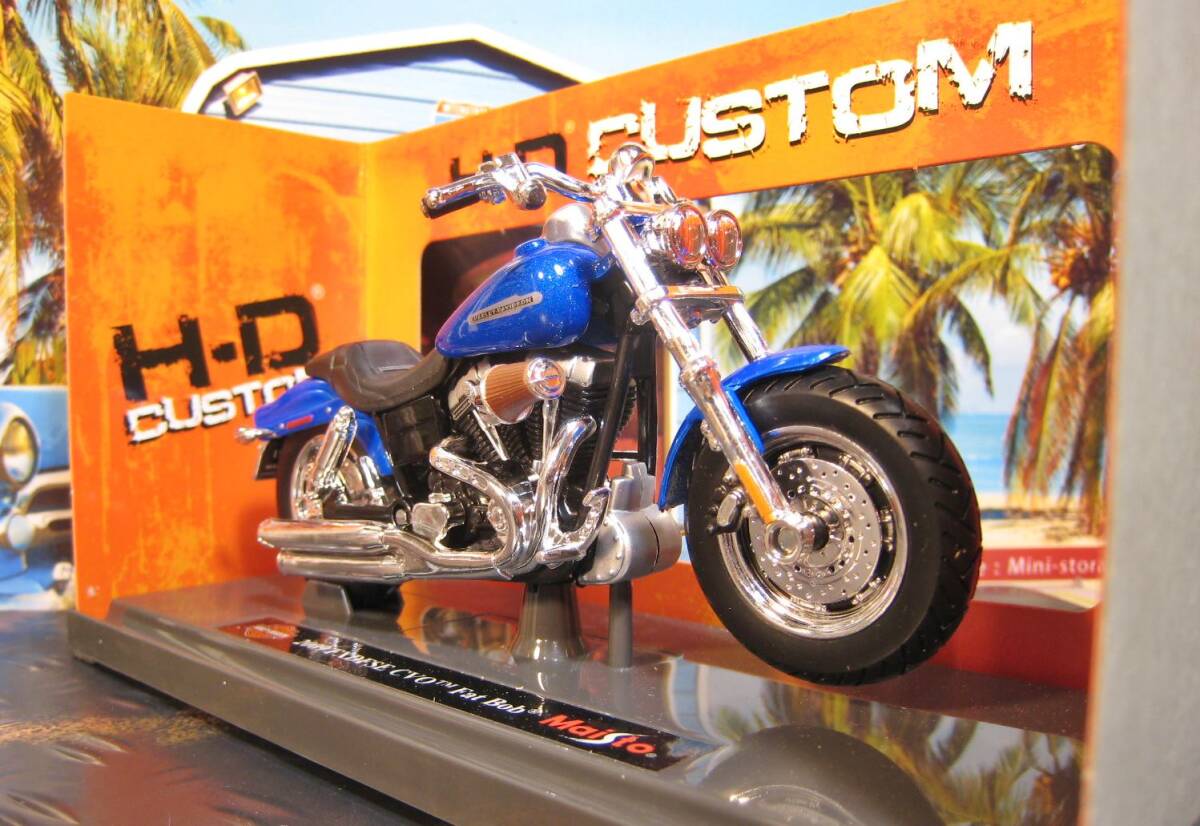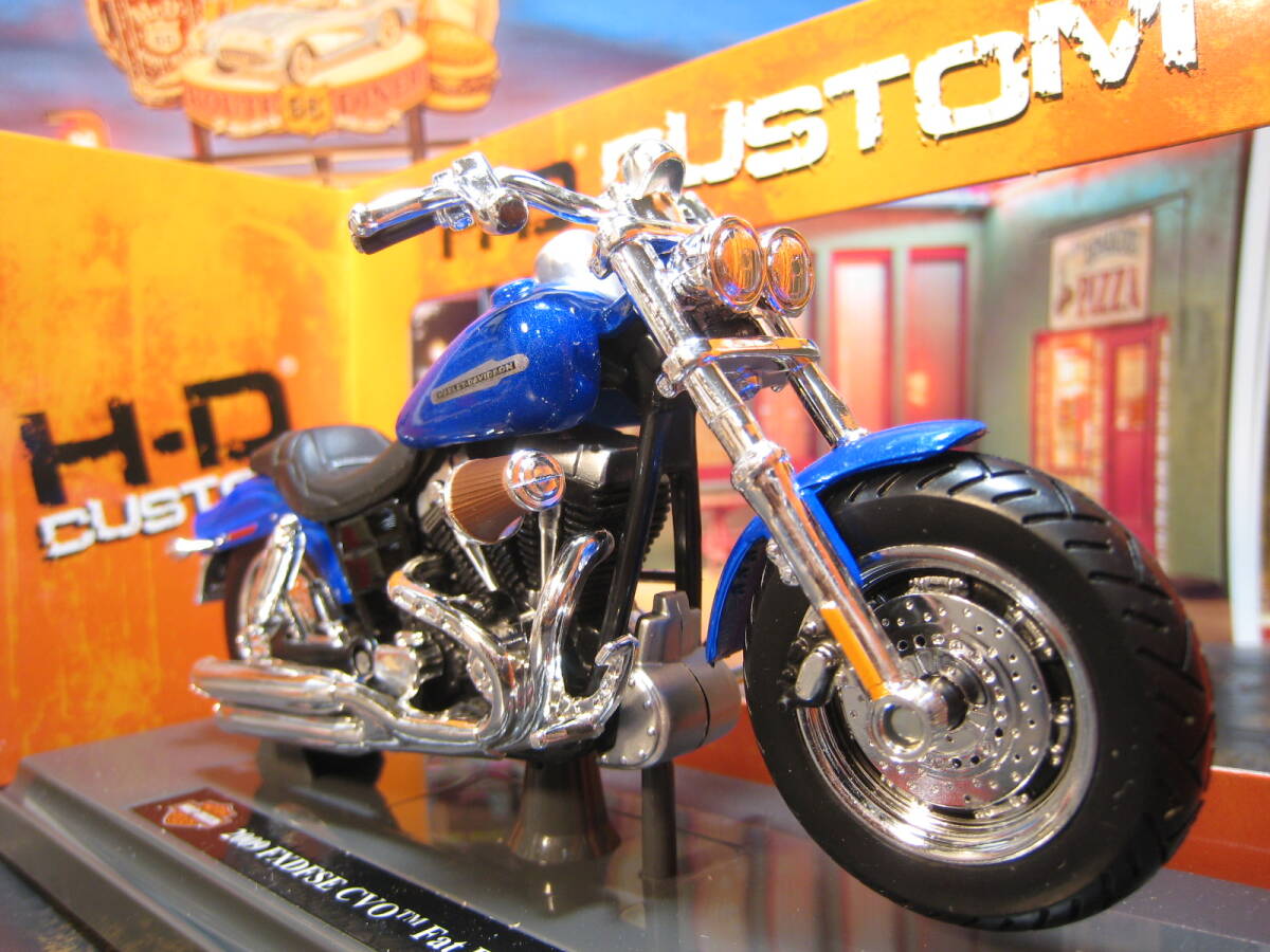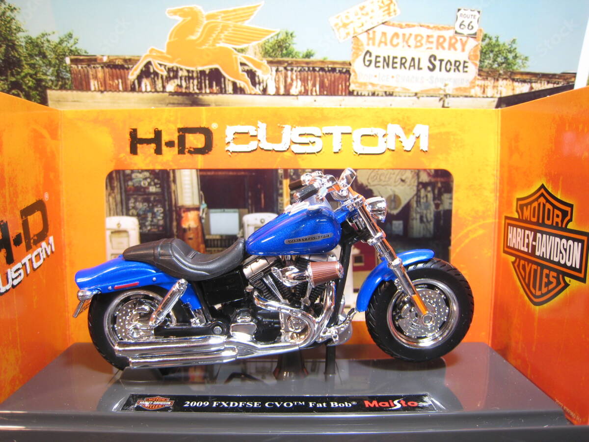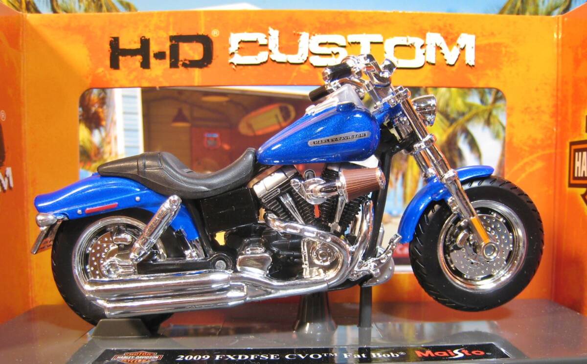 Maisto マイスト 1/18 2009 ハーレー ダビッドソン Harley CVO Fat Bob FATBOB ツインヘッドライト 単眼メーター ファットボブ 青 箱付