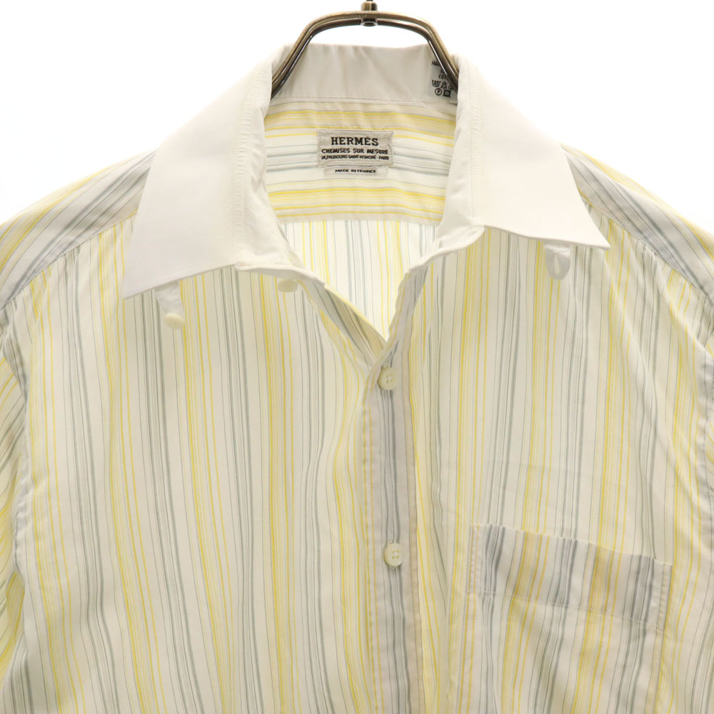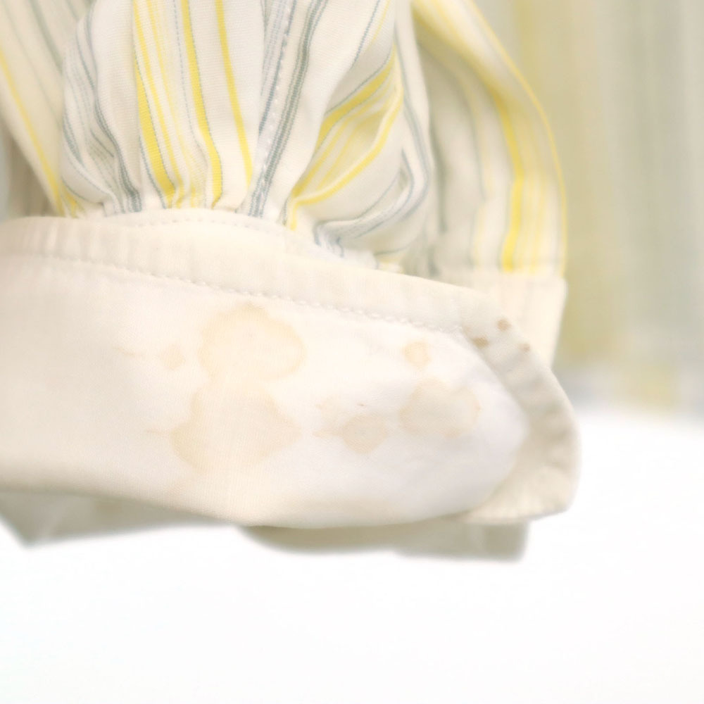 | 詳細 | サイズが不明です。実寸を参考にお願いいたします。襟ぐりと袖口に汚れあり。カフスのボタンが取れかけで違うボタンが付いています。 |