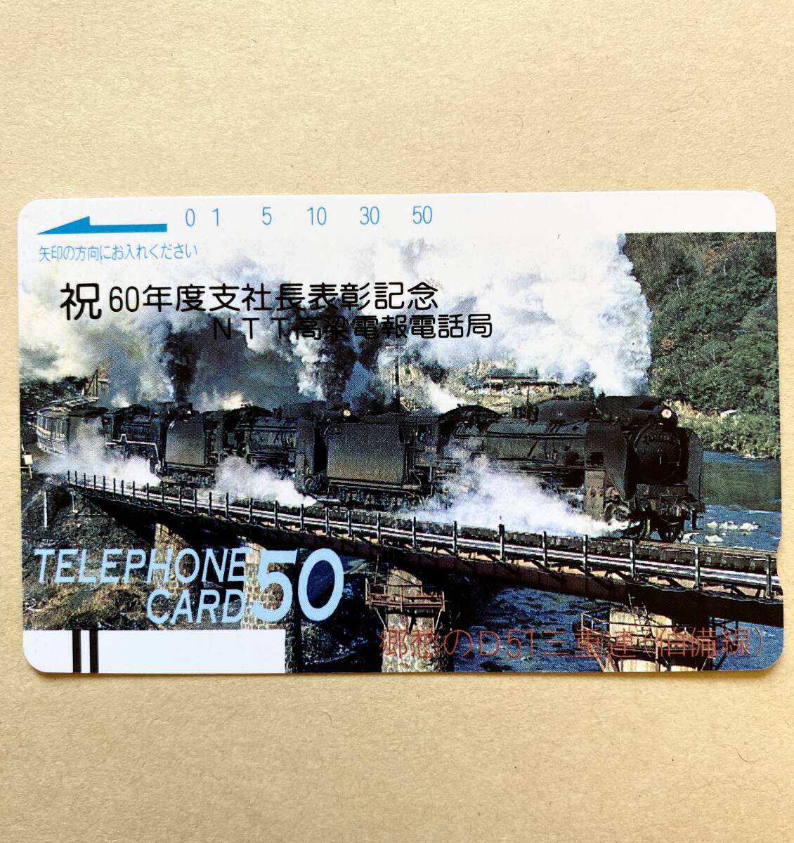 【未使用】 鉄道テレカ 50度 SL 郷愁のD51 三重連 (伯備線) 祝60年度支社長表彰記念 NTT高梁電報電話局