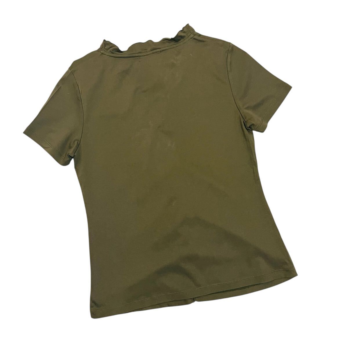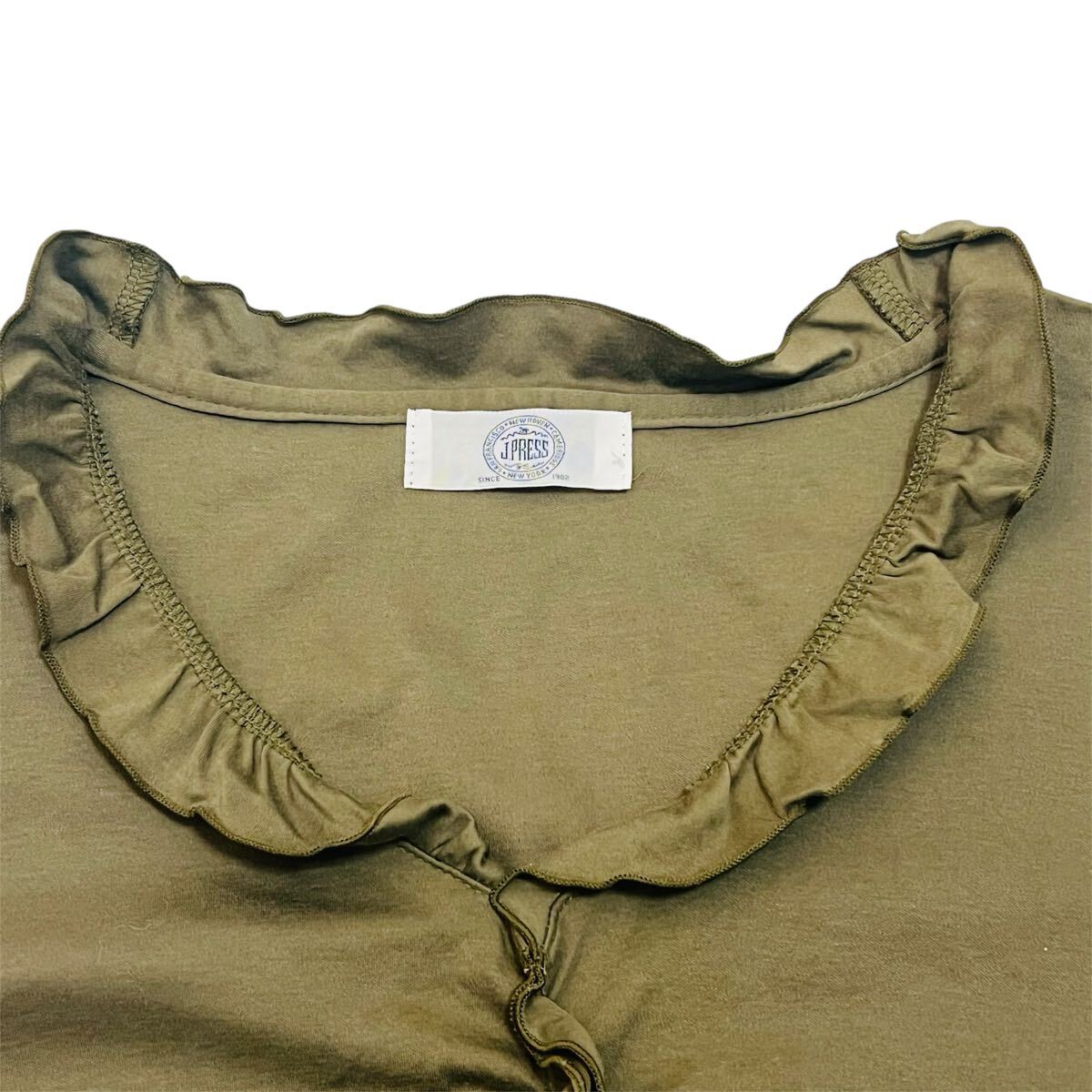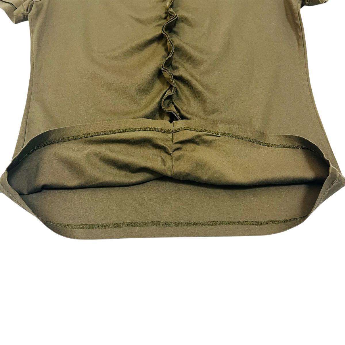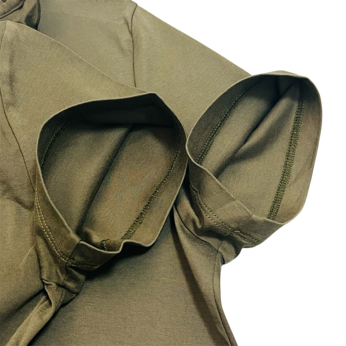 落ち着いたカーキカラーで、カジュアルにもきれいめにも着回しやすい一着です。