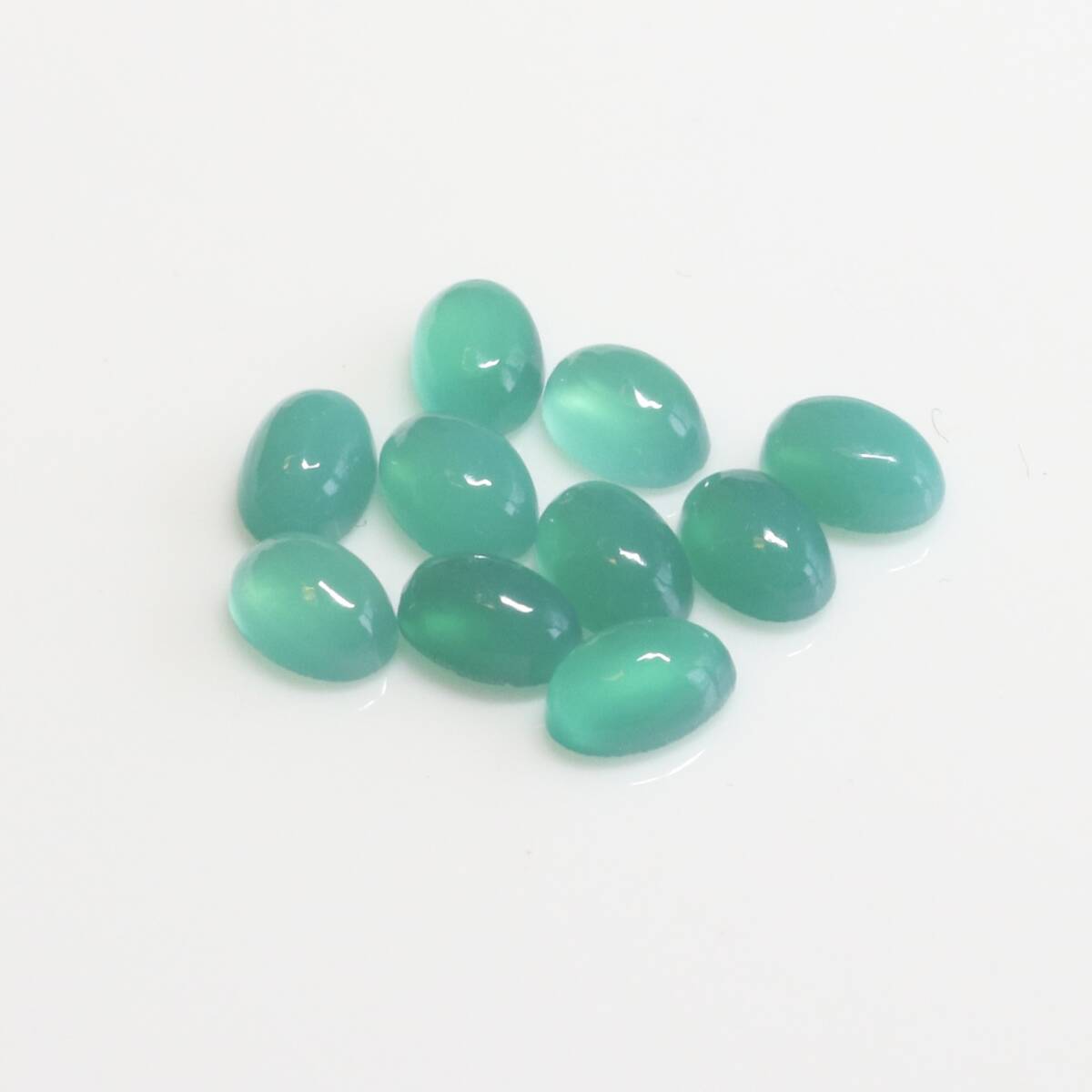 キレイな緑めのう 約4x6mmオーバルカボション 10個 4.54ct