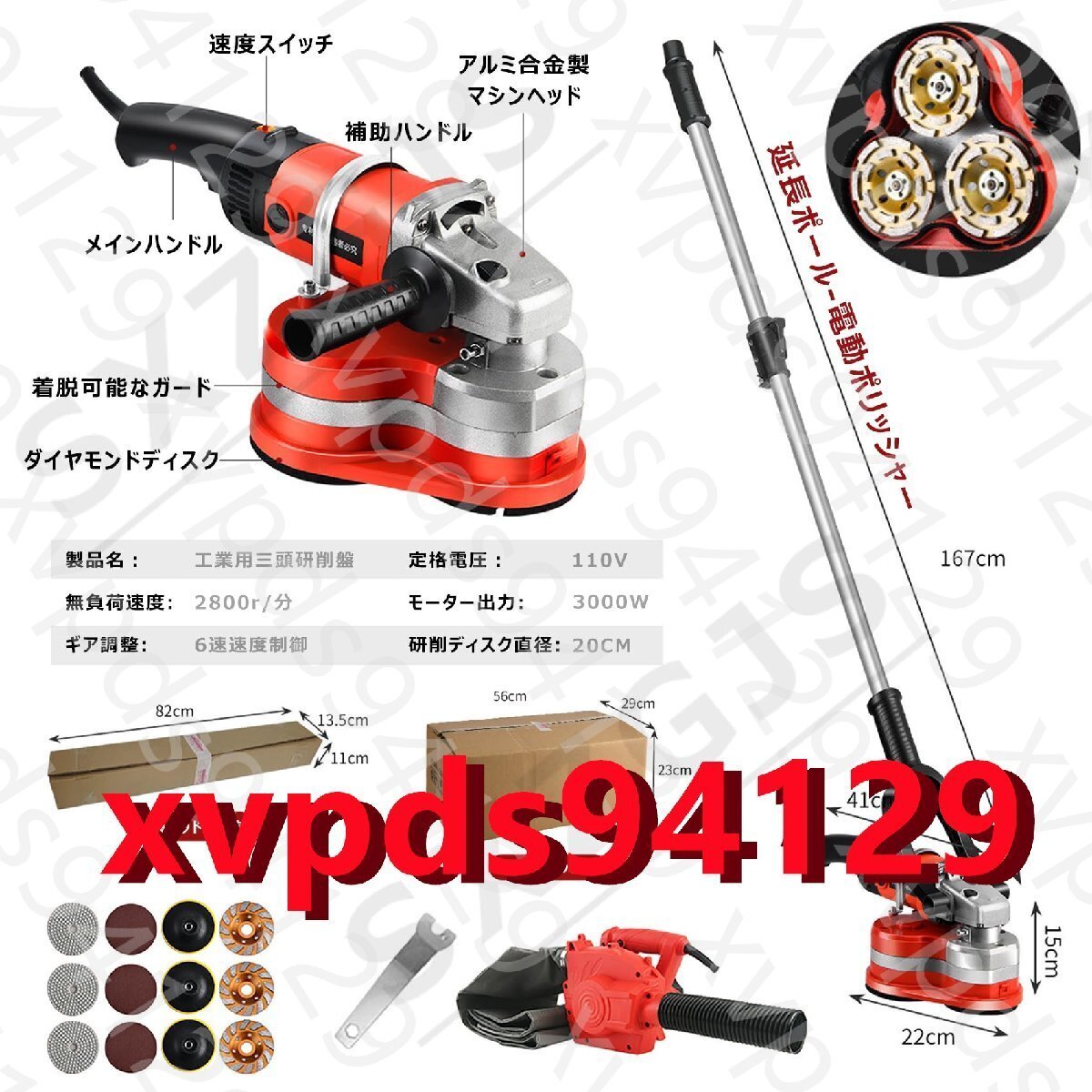 電動トロウェル 110V 3頭 パワートロウェル 6速調整 コンクリート研磨機 セメント モルタル ポリッシャー 電動サンダー