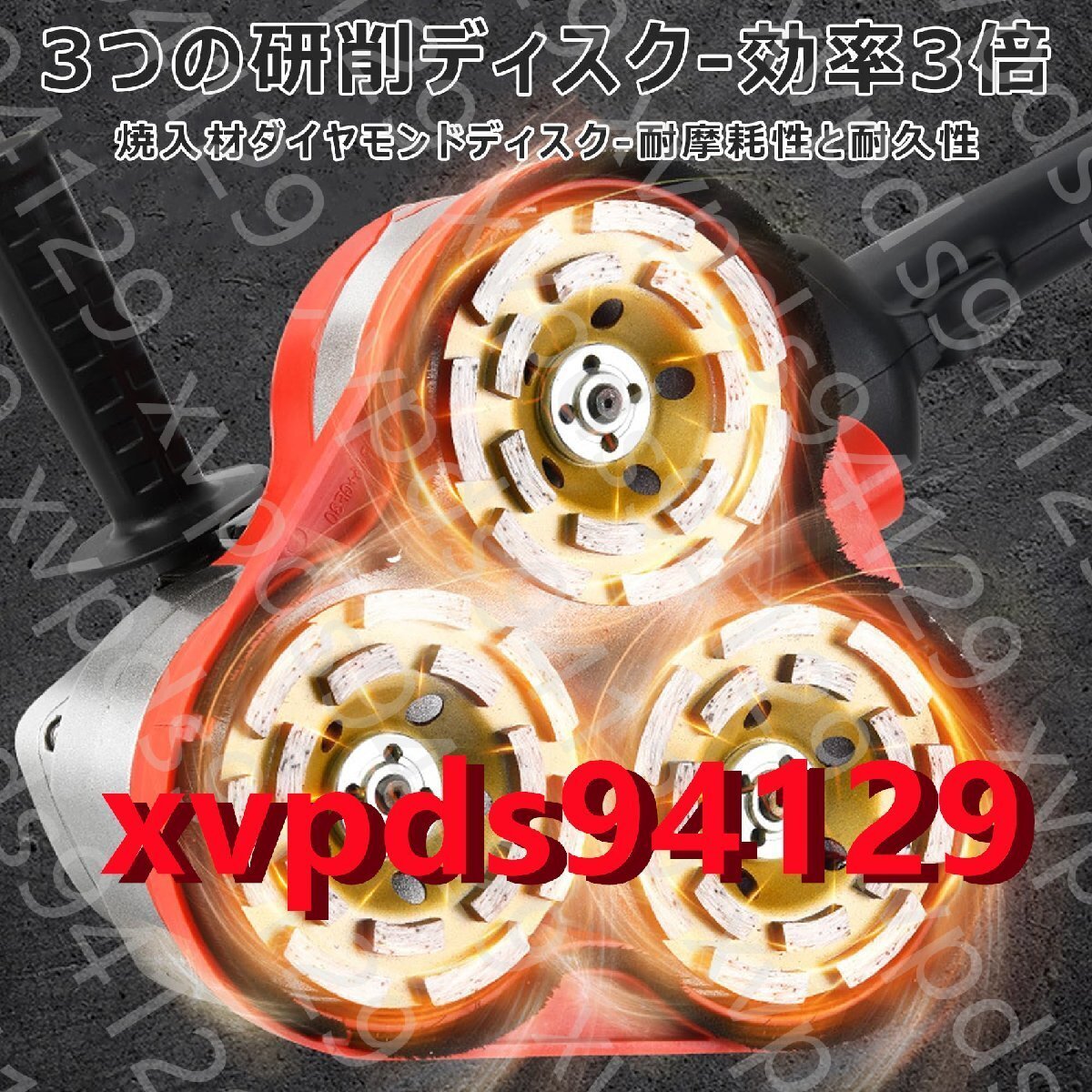 【3つの研削ヘッド】:可変速研磨機には3つの研削ヘッドと3つのフリーダイヤモンドコンクリート研削砥石があり、研削面積が増加し、より耐摩耗性と耐久性があります。