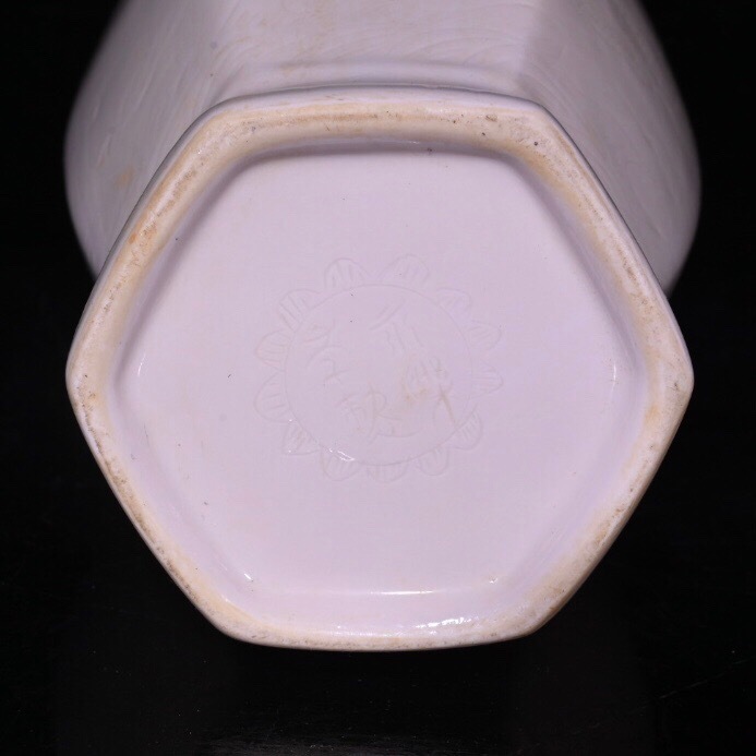 ▽鴻▽ 明 永樂年製款 紅釉 龍鳳紋 六方瓶 古陶瓷品 置物 古賞物 中国古玩 中国古美術