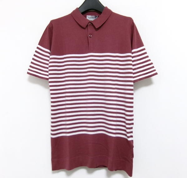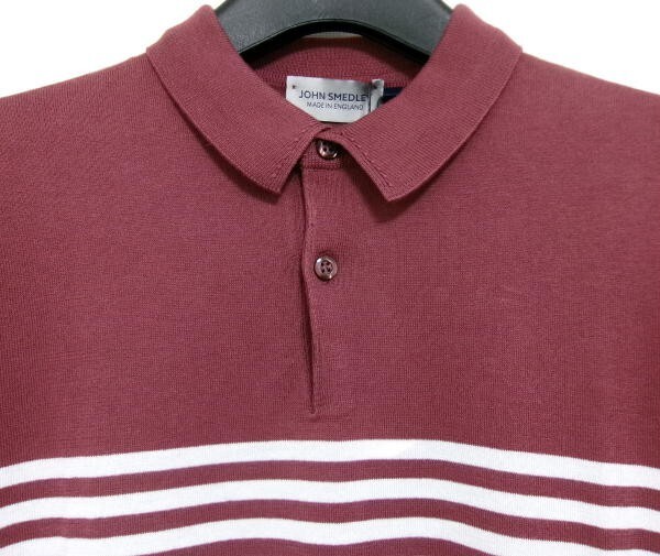 新品★JOHN SMEDLEY ジョンスメドレー★RONLI 半袖コットンニット ボーダー ポロシャツ★STANDARD FIT Mサイズ 英国製 綿100%