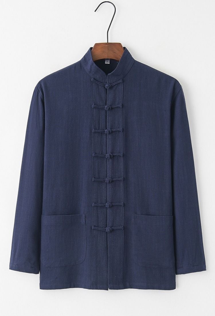 セットアップ 上下セット 長袖 綿麻 カジュアル ルームウェア チャイナ風 衣装 春 秋 男性用 中華風 父の日 ネイビー 2XL