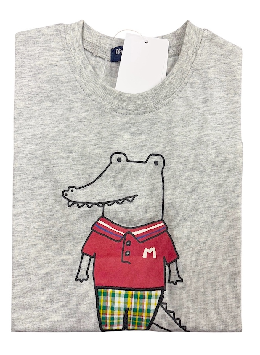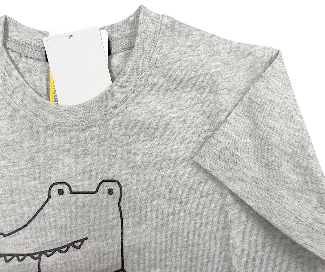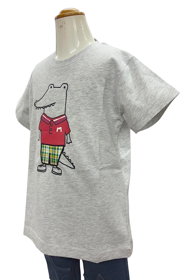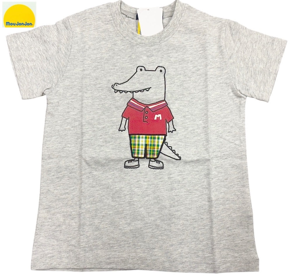 新作 新品タグ付 Moujonjon ムージョンジョン★ワニプリント バックロゴ★天竺 半袖Tシャツ★子供 120cm 7-8才 ¥1760