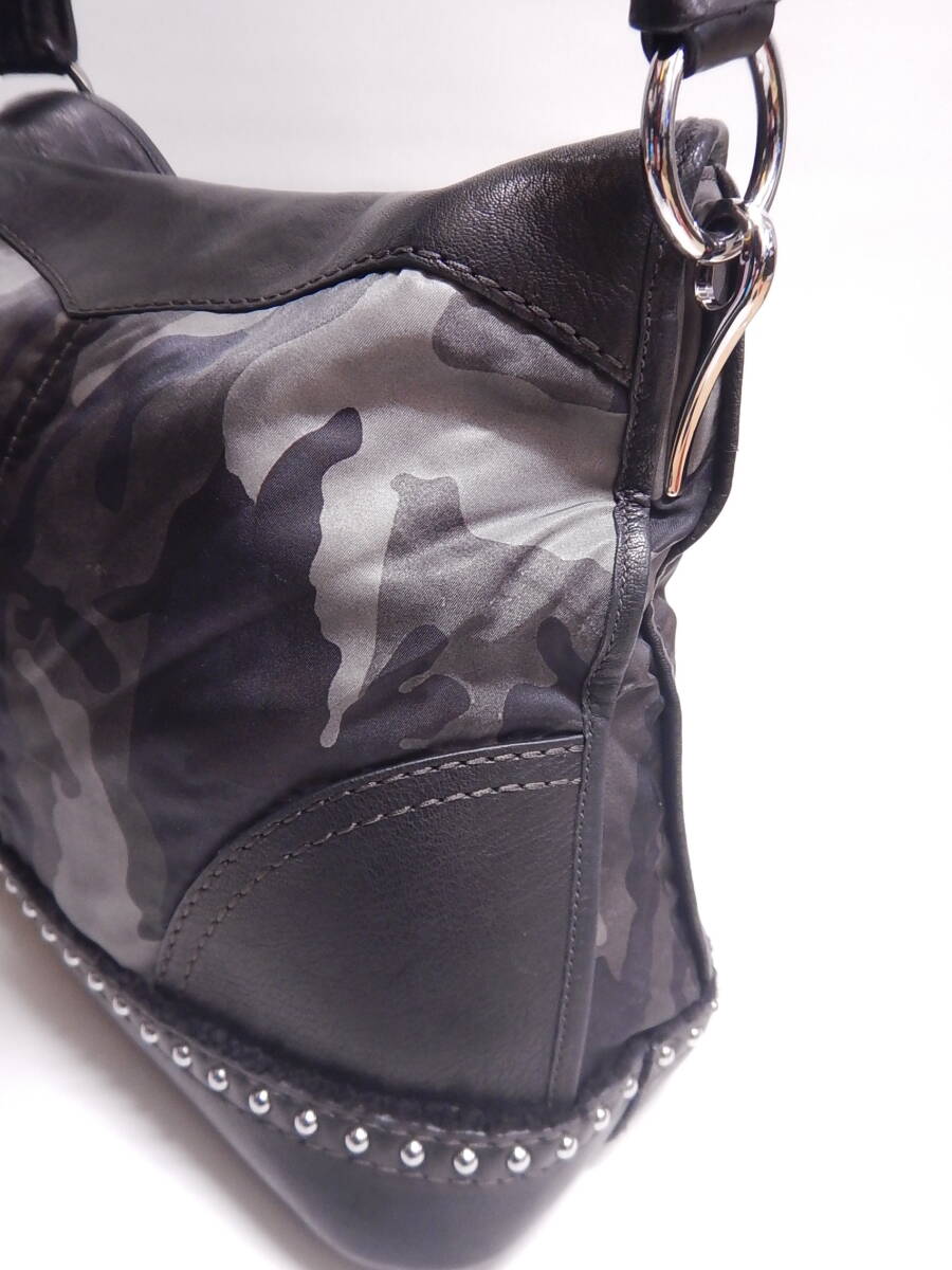 美品■PRADA プラダ カモフラージュ ワンショルダーバッグ ハンドバッグバッグ ナイロン×レザー 黒■