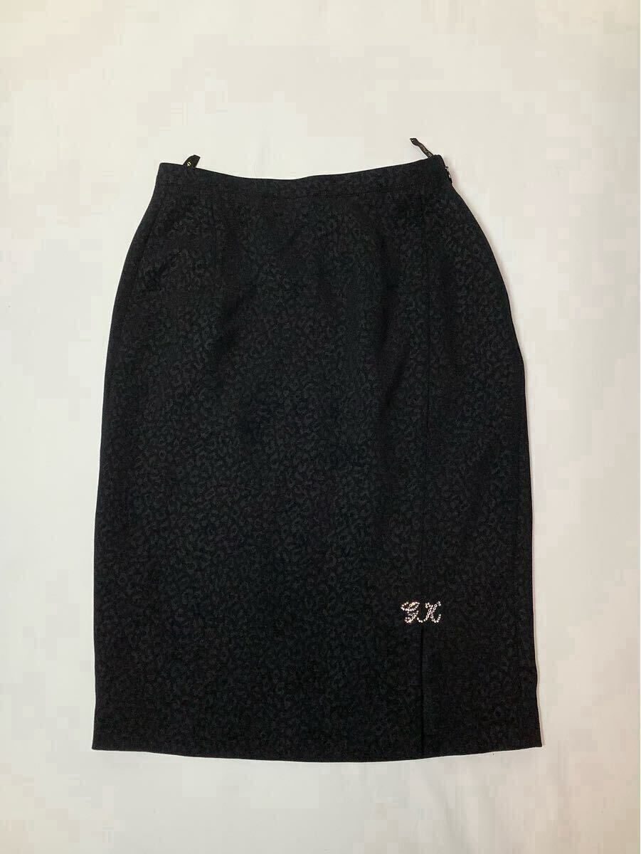 ・レオパード柄 ジャージー ラインストーン 膝下 ロング タイトスカートの出品になります。