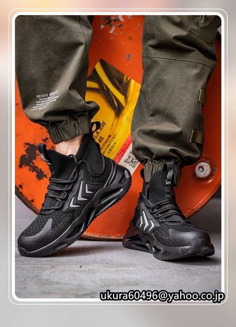 新品安全靴 おしゃれ ハイカット スニーカー メンズ 通気 蒸れにくい 作業靴 軽い 黒 鋼先芯入り男女兼用 セーフティーシューズ