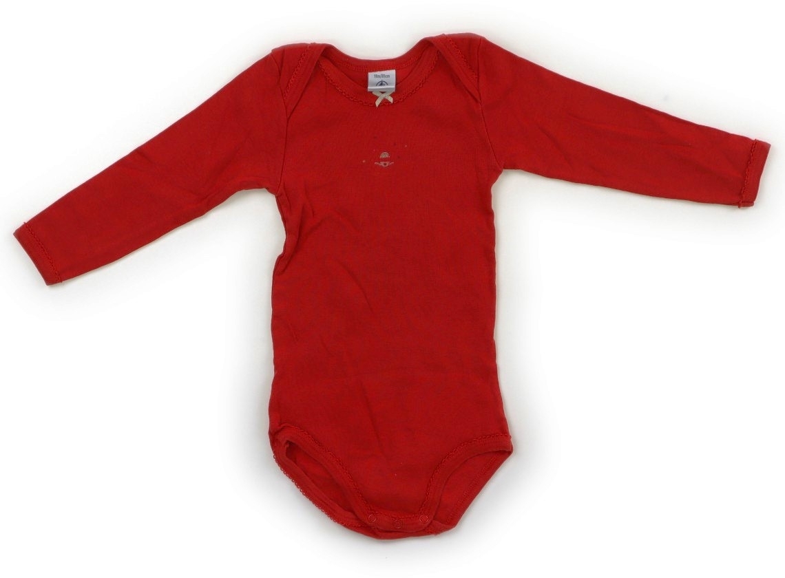 実際のサイズ表記は18m/81cm。コットン。胸元のプリントに剥げ、全体に色あせ・毛羽立ちがあります。洗い替え用にいかがでしょうか。