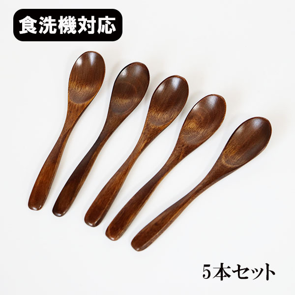 木製 スプーン 食洗機対応 漆塗り 茶碗蒸しスプーン 13cm 5本 セット 天然木 漆器 コーヒースプーン デザートスプーン 小さい