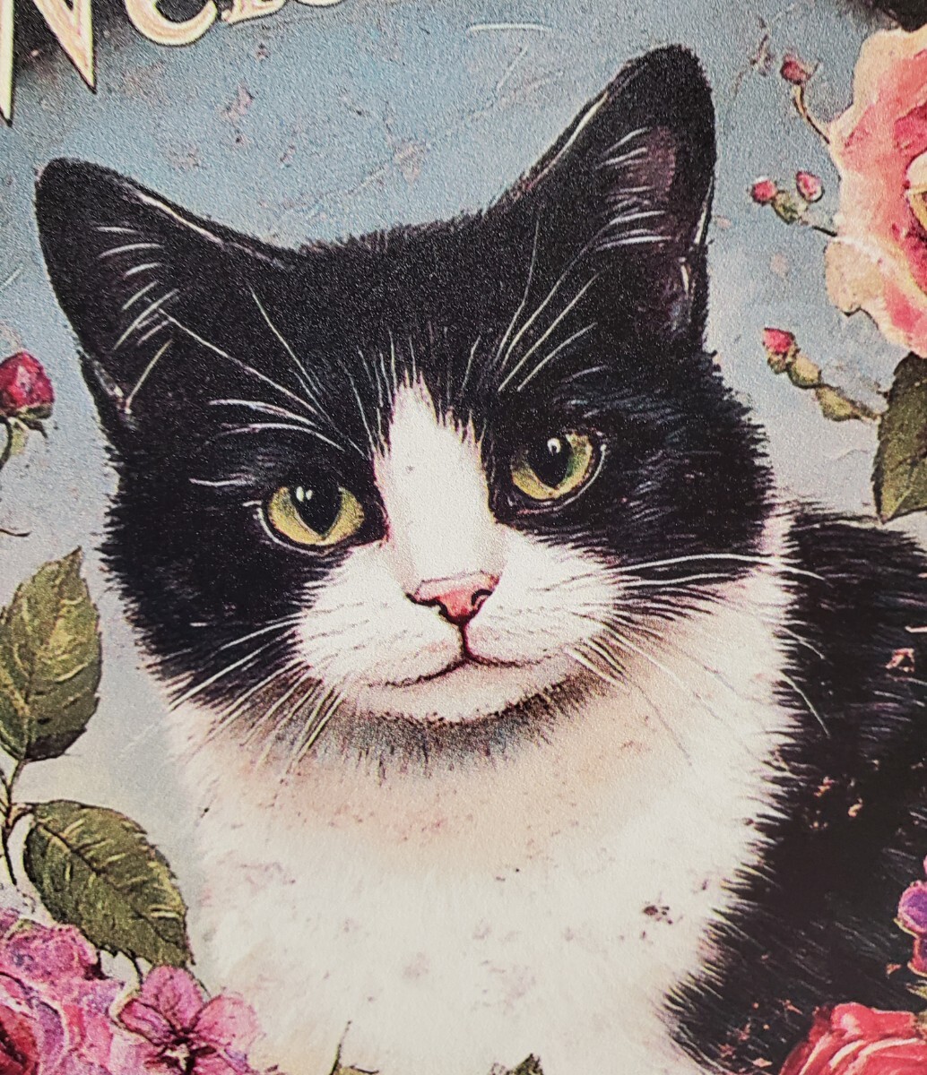 アルミニウムのメタルボードに3Dのプリント技術で描かれた猫のメタルアートです。