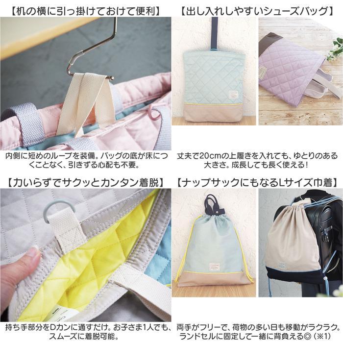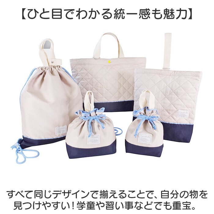商品説明 | ・・【入園・入学準備にリストアップ】 ・通園・通学にマストな袋物◎全部お揃いで使える「入園入学5点セット」。 ・【柔らかくナチュラルなペールトーン】 ・温かみのある風合いで、飽きのこない仕上がり。複数の色使いや、ロゴタグがアクセント☆ ・【ひと目でわかる統一感も魅力】 ・すべて同じデザインで揃えることで、自分の物を見つけやすい!学童や習い事などでも重宝。 ・【お友だちとお揃いでも大丈夫】 ・全て内側にネームタグ付きで、取り間違いを防止。外からは名前が見えず、防犯面にも配慮。 ・【A4対応のレッスンバッグ】 ・A4サイズがすっぽり。お道具箱などの週末の持ち帰りや習い事バッグにおすすめ! ・【いつでもどこでも開け閉め簡単】 ・開口部はスナップボタン式。いつでもサッと開閉できて、中身の飛び出しをガード。 ・【小物が迷子にならないポケット付き】 ・吊りポケットを1つ配置。細々した物も、すぐに取り出せるのが嬉しい◎ ・【机の横に引っ掛けておけて便利】 ・内側に短めのループを装備。バッグの底が床につくことなく、引きずる心配も不要。 ・【出し入れしやすいシューズバッグ】 ・丈夫で20cmの上履きを入れても、ゆとりのある大きさ。成長しても長く使える! ・【力いらずでサクッとカンタン着脱】 ・持ち手部分をDカンに通すだけ。お子さま1人でも、スムーズに着脱可能。 ・【ナップサックにもなるLサイズ巾着】 ・両手がフリーで、荷物の多い日も移動がラクラク。ランドセルに固定して一緒に背負える◎ ・(※1)持ち手部分のスナップボタンベルトを使って、固定できます。 ・【マルチに使える万能アイテム】 ・ガバっと開いて、体操着や防寒着も収まる大きさ。お出かけバッグとしても。 ・【お弁当箱を収納できるMサイズ巾着】 ・大きく開いて、お弁当箱の出し入れがスムーズ。持ち歩きに便利な持ち手付き。 ・【1年中使える簡易保冷・保温機能】 ・内側シルバーコーティング&保冷剤が入るメッシュポケットも装備。毎日使いに最適。 |