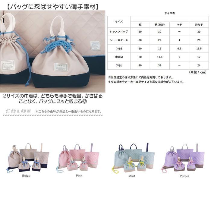 サイズ | ・レッスンバッグ ・シューズケース ・巾着S ・巾着M ・巾着L ※サイズについて詳細は、商品画像の中にあるサイズ表をご覧くださいませ。 |