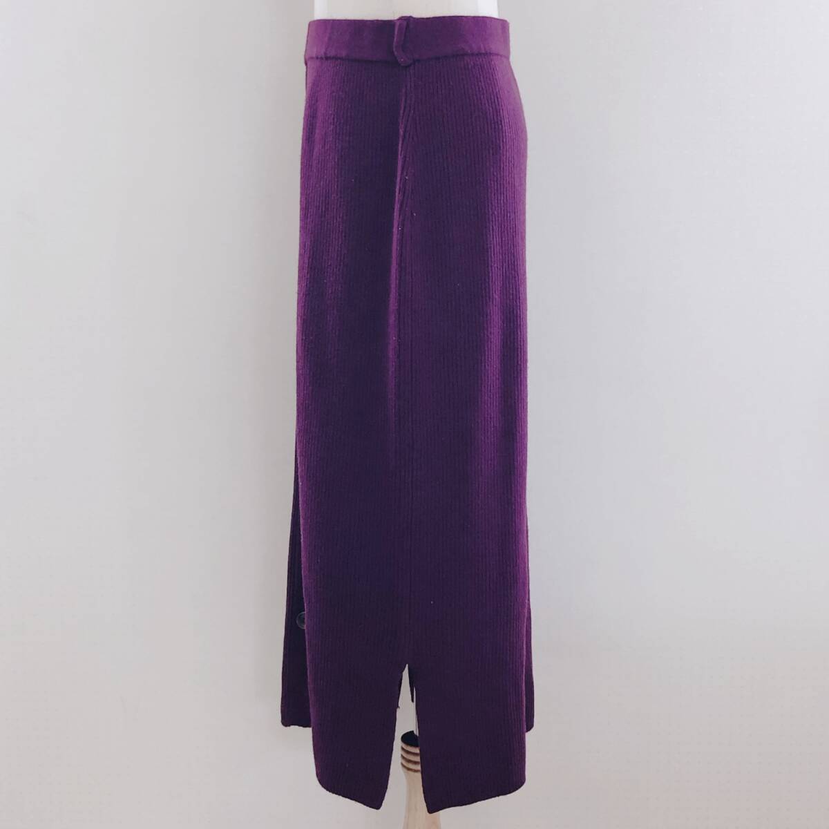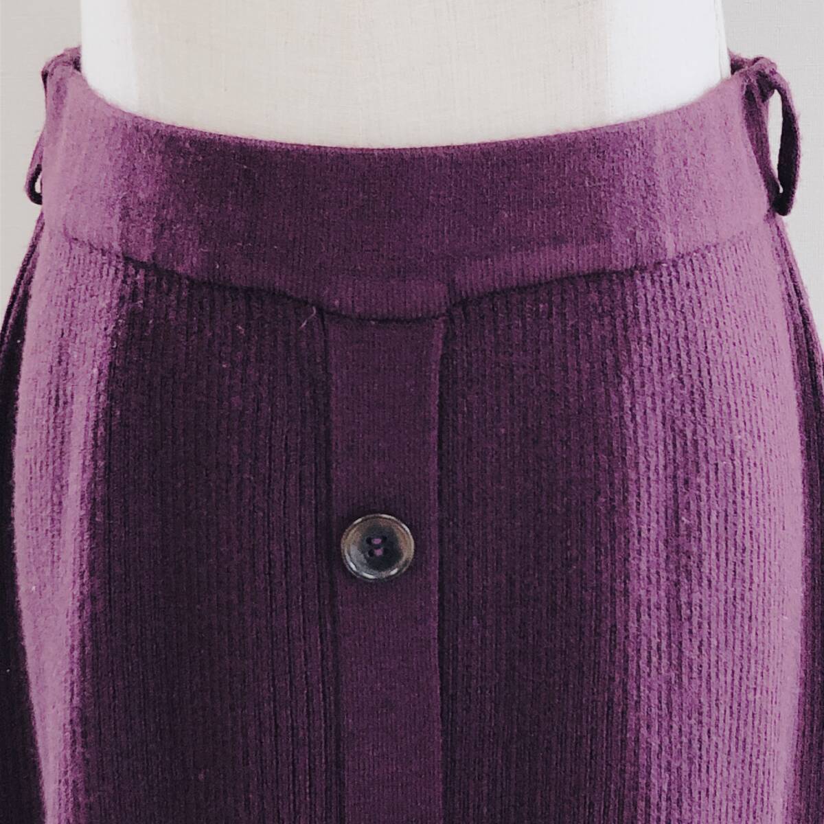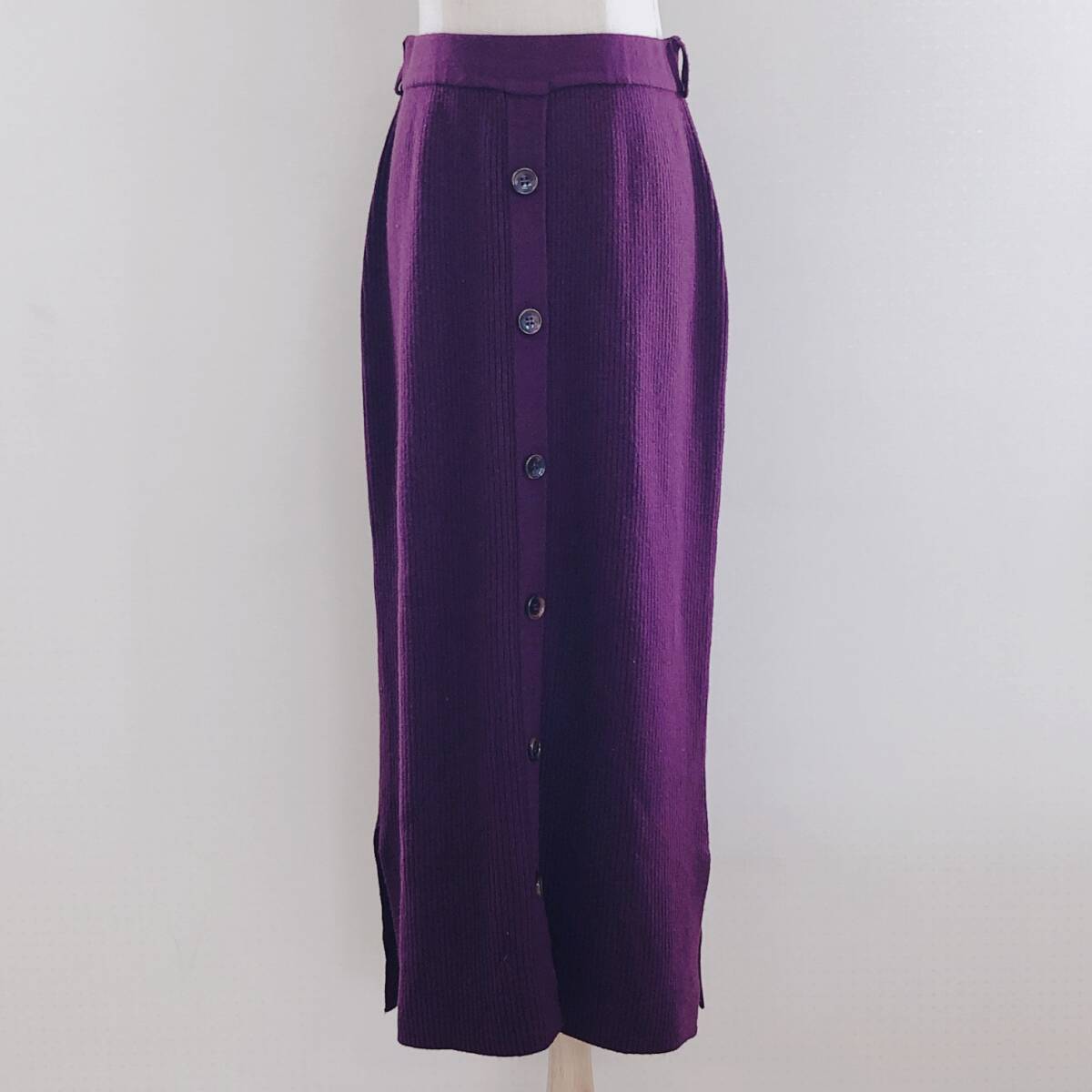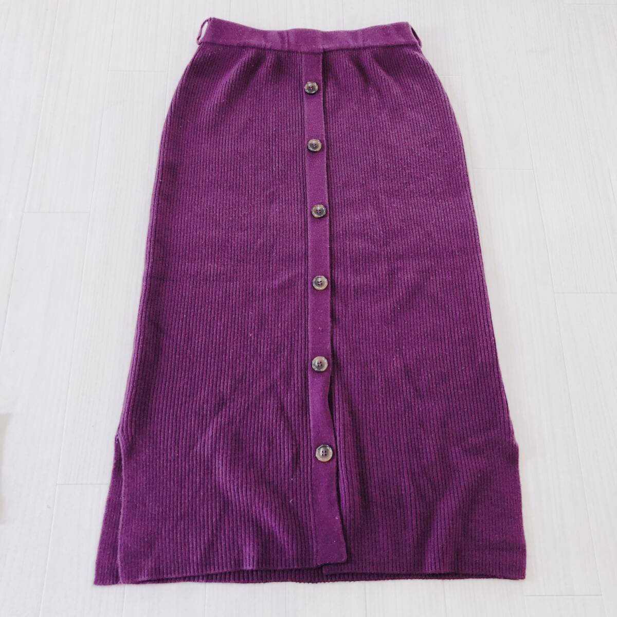 YX1359 natural couture レディース スカート 膝丈 厚手 伸縮性 スリット 4つ穴ボタン パープル 紫 シンプル かわいい おしゃれ 春秋冬