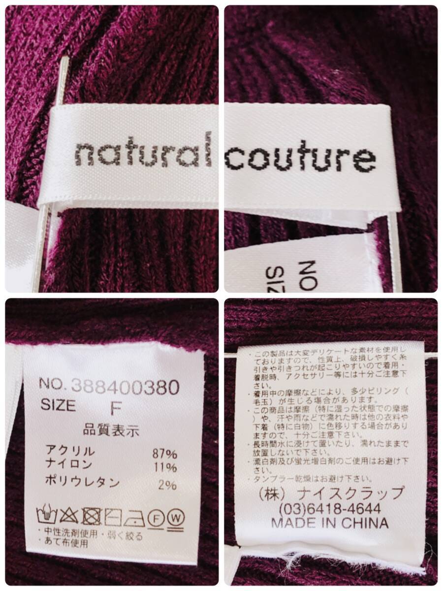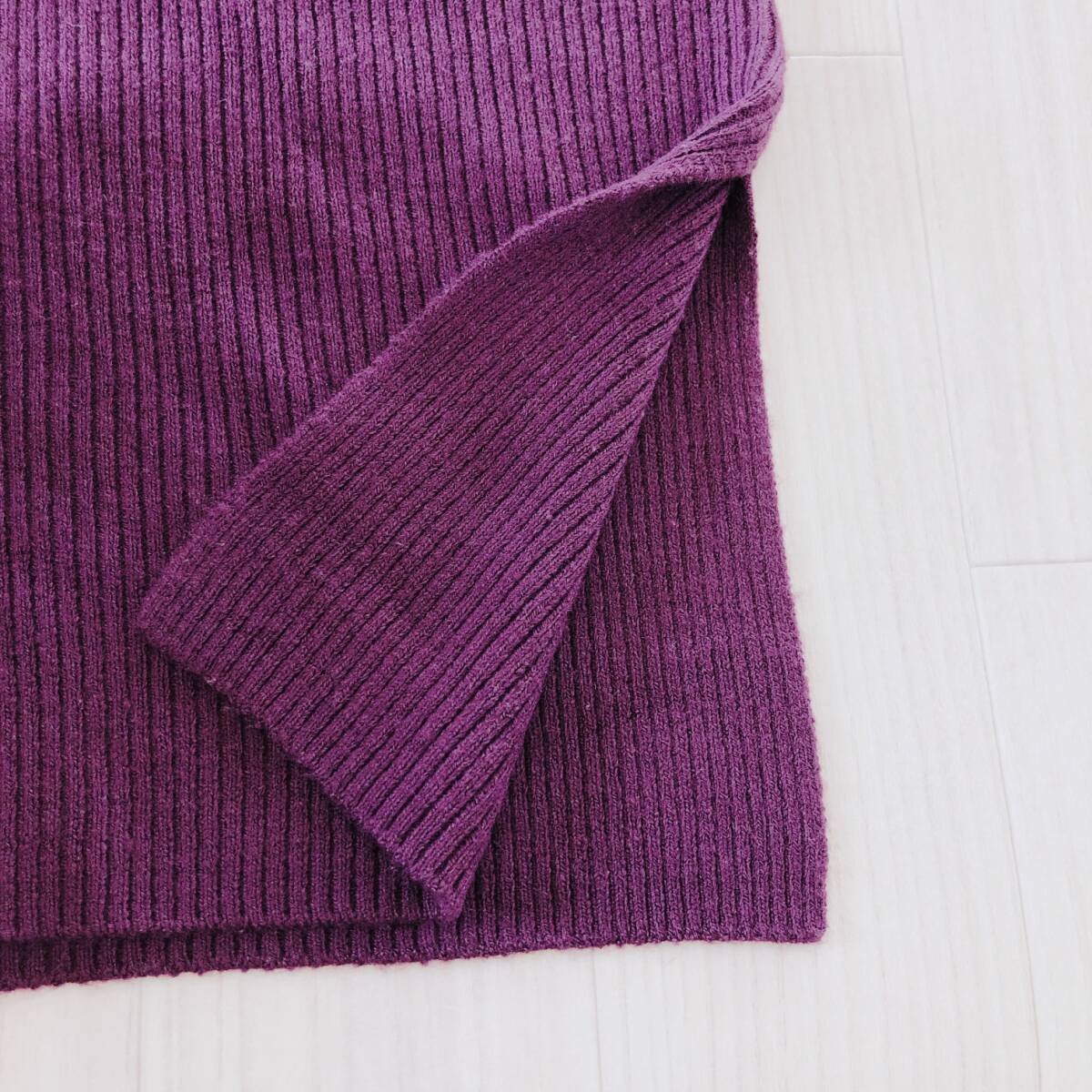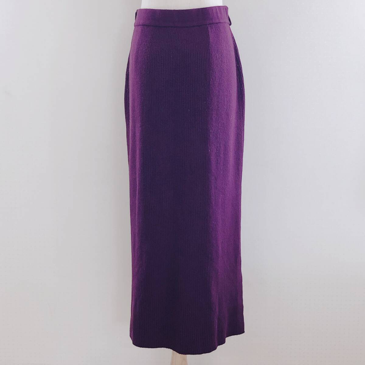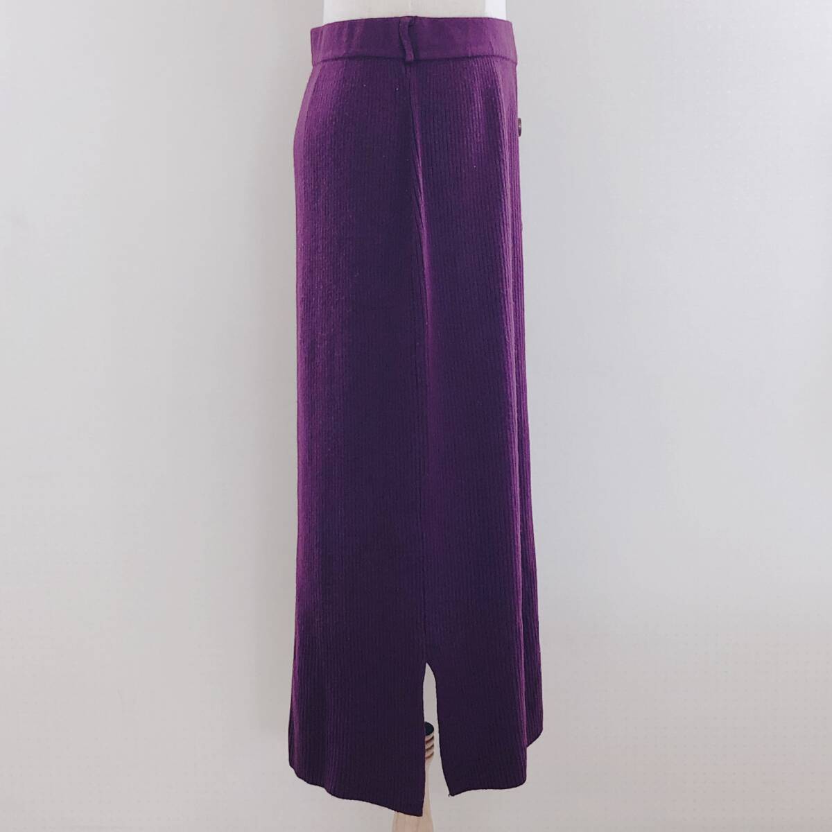 YX1359 natural couture レディース スカート 膝丈 厚手 伸縮性 スリット 4つ穴ボタン パープル 紫 シンプル かわいい おしゃれ 春秋冬