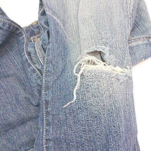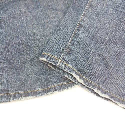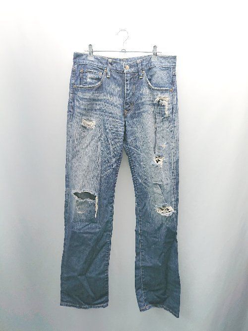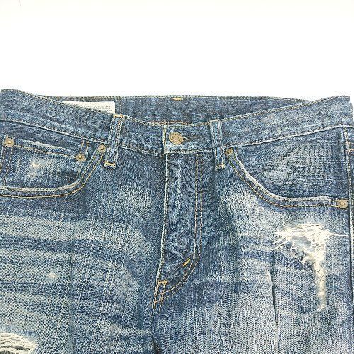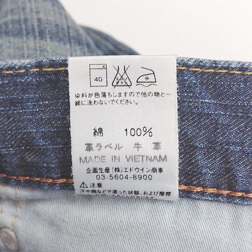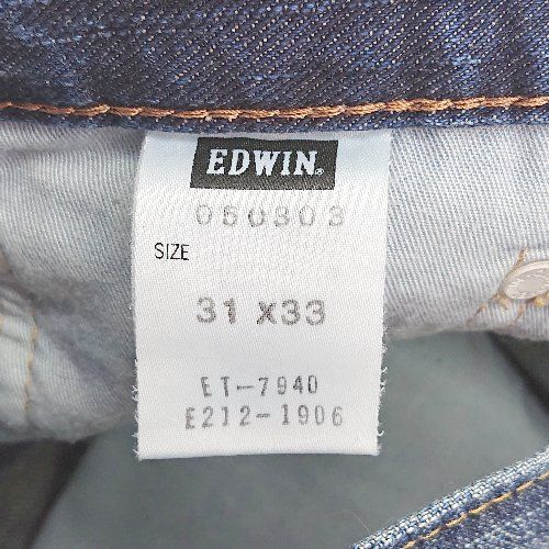 ◇ EDWIN エドウィン パッチ ダメージ加工 ステッチ ブランドロゴ オシャレ デニムパンツ サイズ31x33 ブルー系 メンズ E