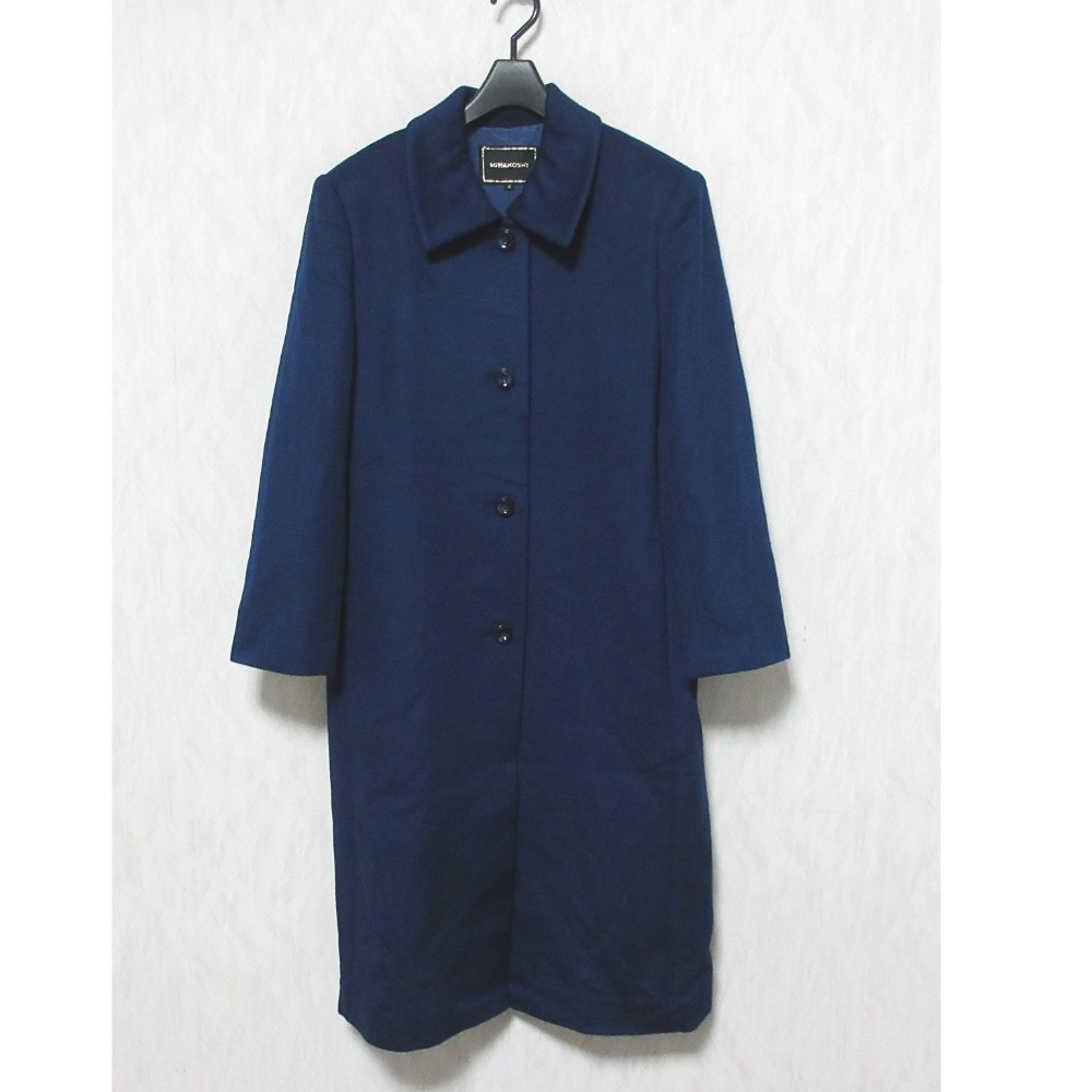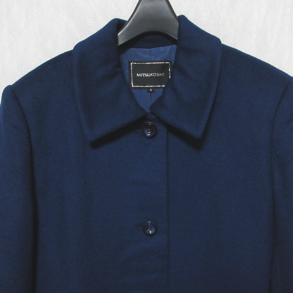 美品 MITSUKOSHI 三越 TOYO KEORI 東洋毛織製 カシミヤ100% ピュアカシミヤ ステンカラーコート バルマカーンコート 9号 ブルー系