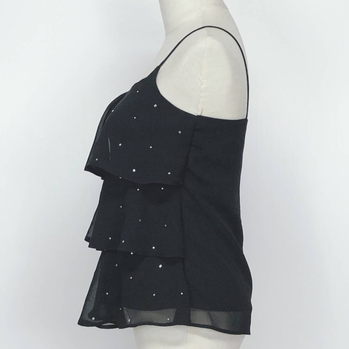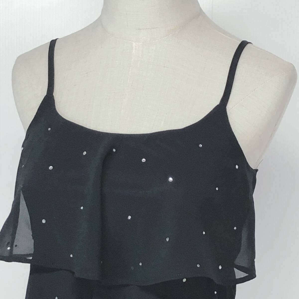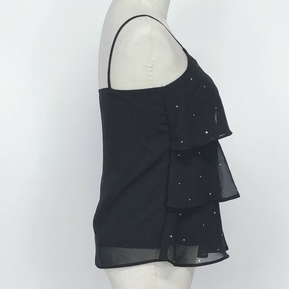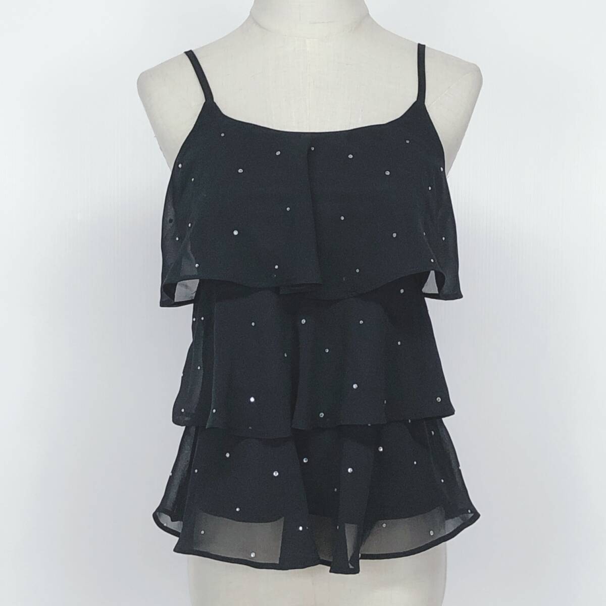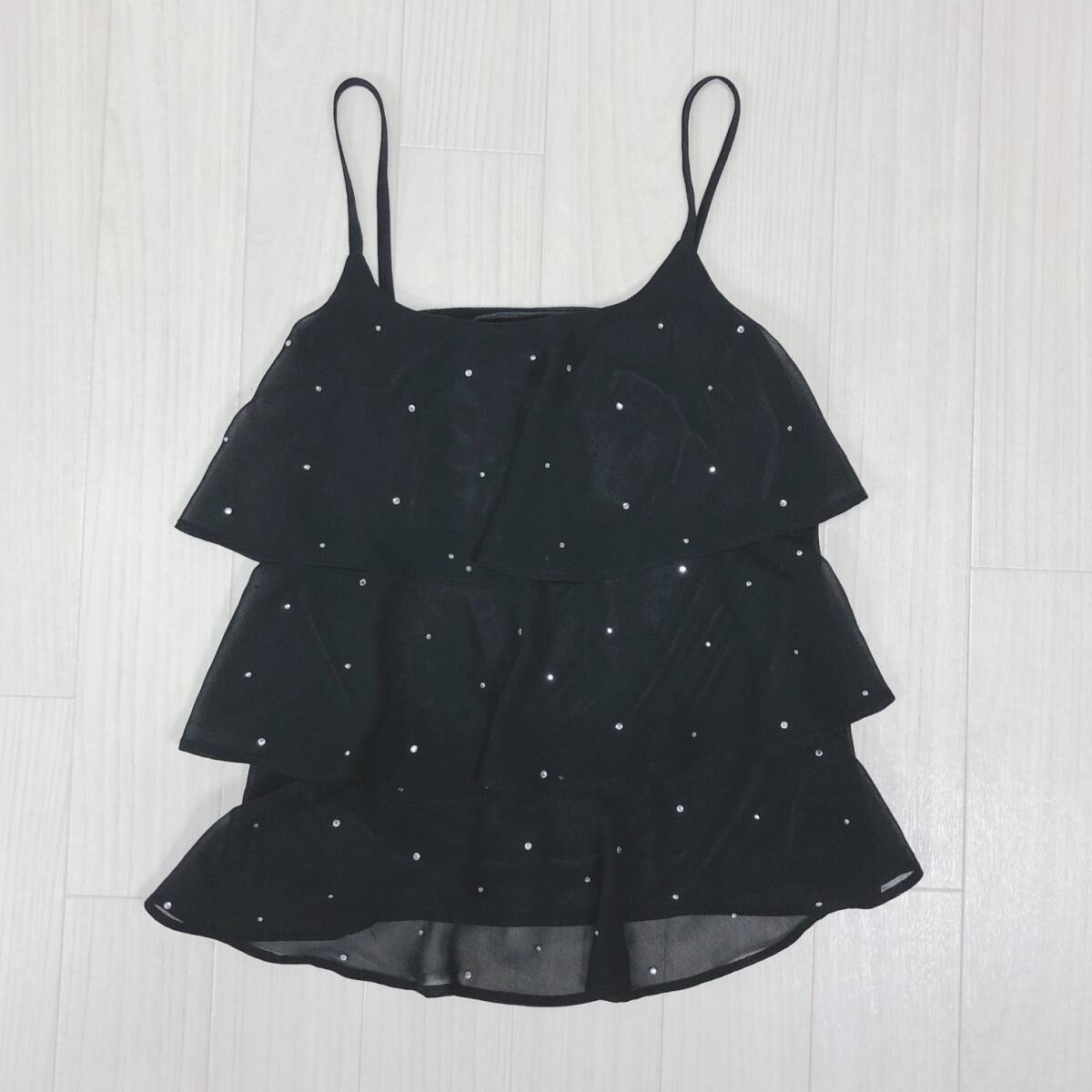 YX1302 美品 CAROLL キャロル レディース トップス キャミソール ラインストーン オーガンジー 裏地あり 薄手 ウエスト58~64 黒 韓国製
