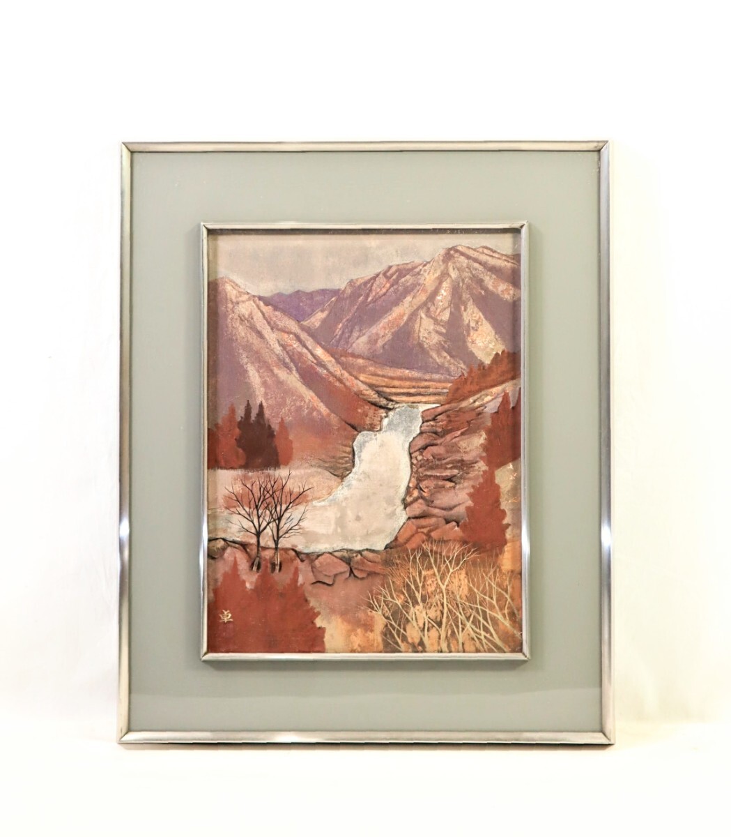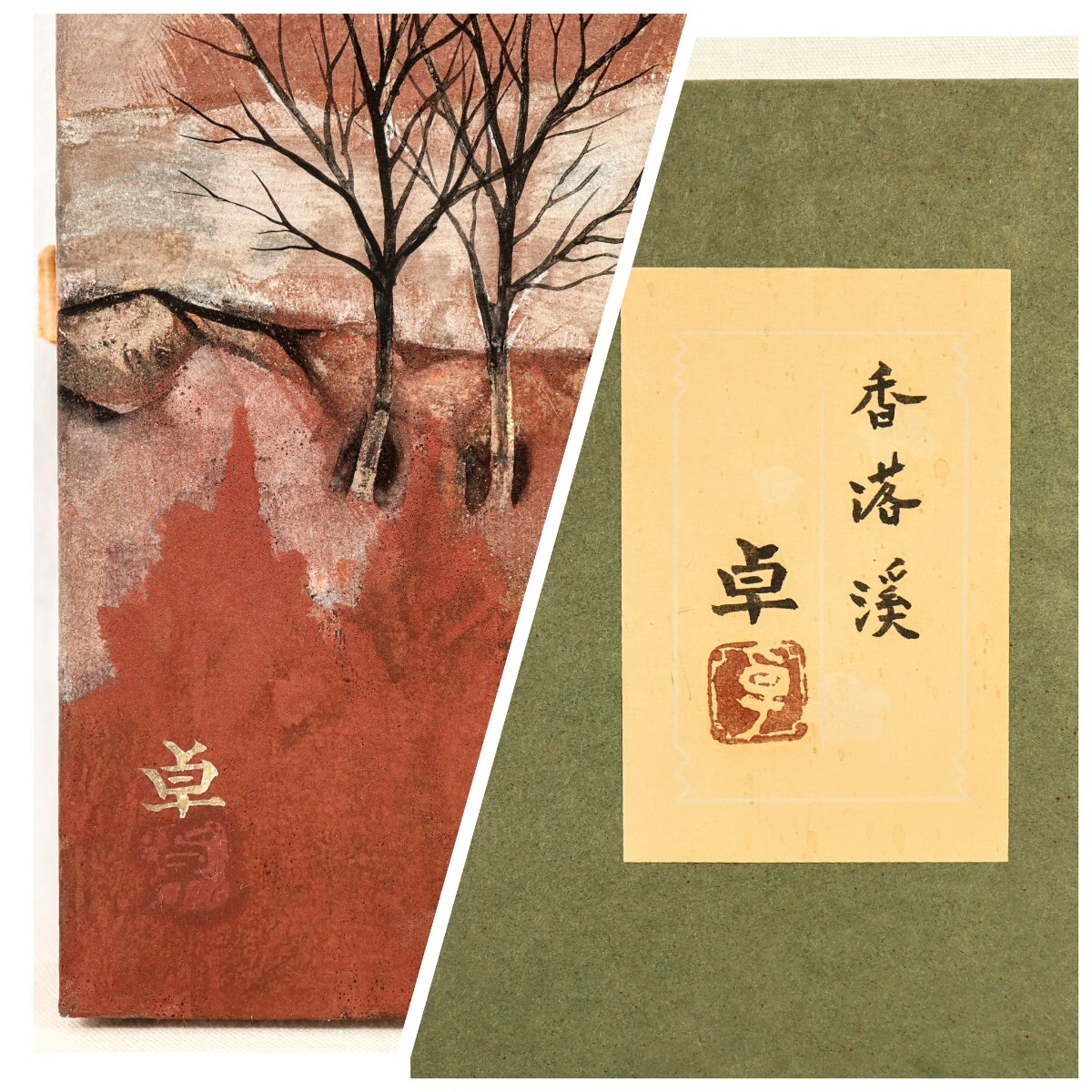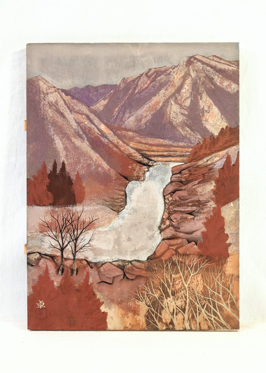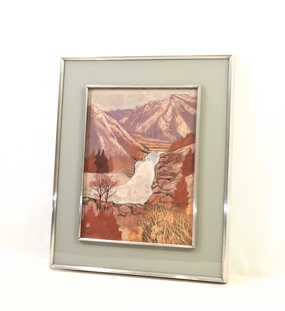 真作 上原卓 日本画「香落渓」画寸 27×36cm 京都府出身 創画会会員 京都市立芸大教授 身辺な自然を写実的に描写 三重県名張市の渓谷 10290