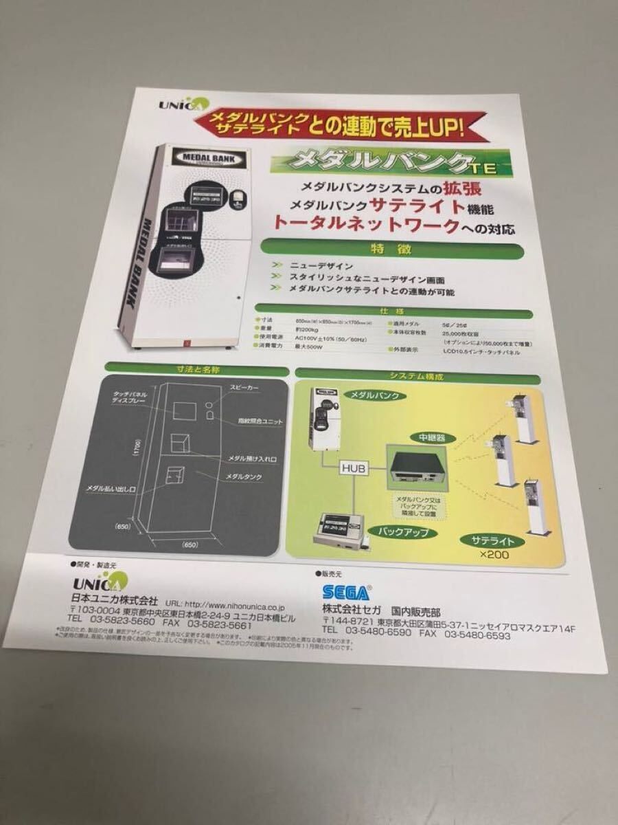 メダルバンクTE SEGA アーケード チラシ カタログ フライヤー パンフレット 正規品 希少 非売品 販促