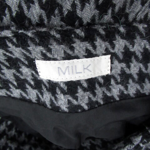 ミルク MILK ボックスプリーツスカート ミニ丈 千鳥格子柄 黒 ブラック グレー /HO15 レディース