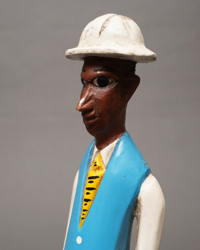 コロン人形はコートジボワールの植民地時代に西洋からさまざまな職業やスポーツ、ファッションなどが伝えられ、それを模して作られた木彫りの人形です。
