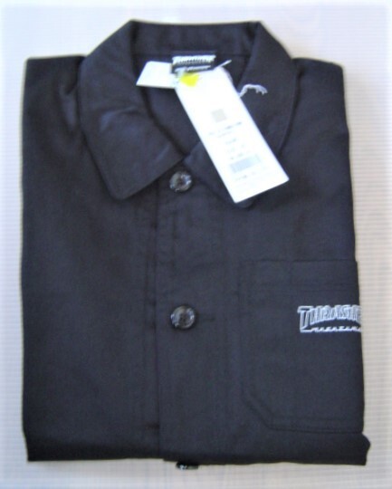 スラッシャーTH5174 HOME TOWN カバーオール ジャケット ツイル 新品 トライオン株 ツイル カバーオール ジャケット 一重 表地、ポリエステル65%綿35% 胸ポケットにTHRASHERロゴプリント 前は五個ボタン黒色 背面は無地です 同じ写真を各サイズ使用しています。 サイズは画像のサイズではなくてタイトル、商品説明のサイズがサイズになります メーカー販売価格10780円(税込)(価格9800円)