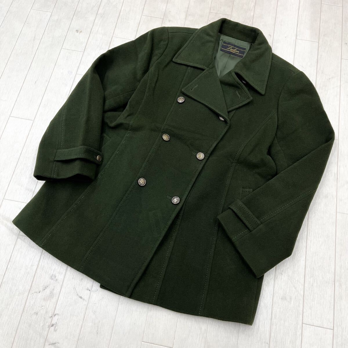 K4★ Leilian レリアン ピーコート Pコート ハーフコート ダブルボタン カシミヤブレンド 日本製 9 グリーン レディース