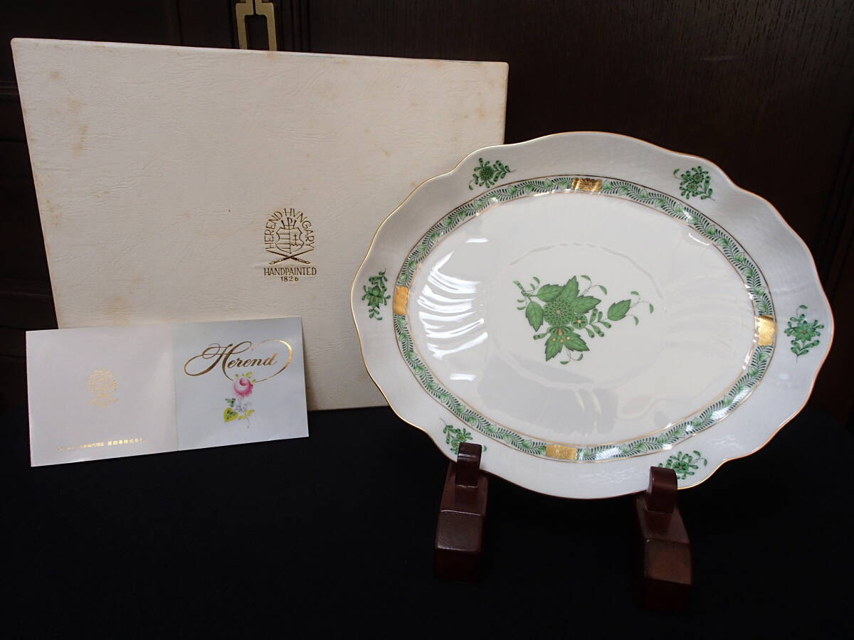 ヘレンド ・ アポニーグリーン・オーバル プレート