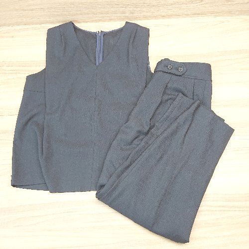 ◇ BABYLONE バビロン Vネック ウエストゴム ビジネス 夏物 - セットアップ 上下 サイズ38 ブラック レディース E