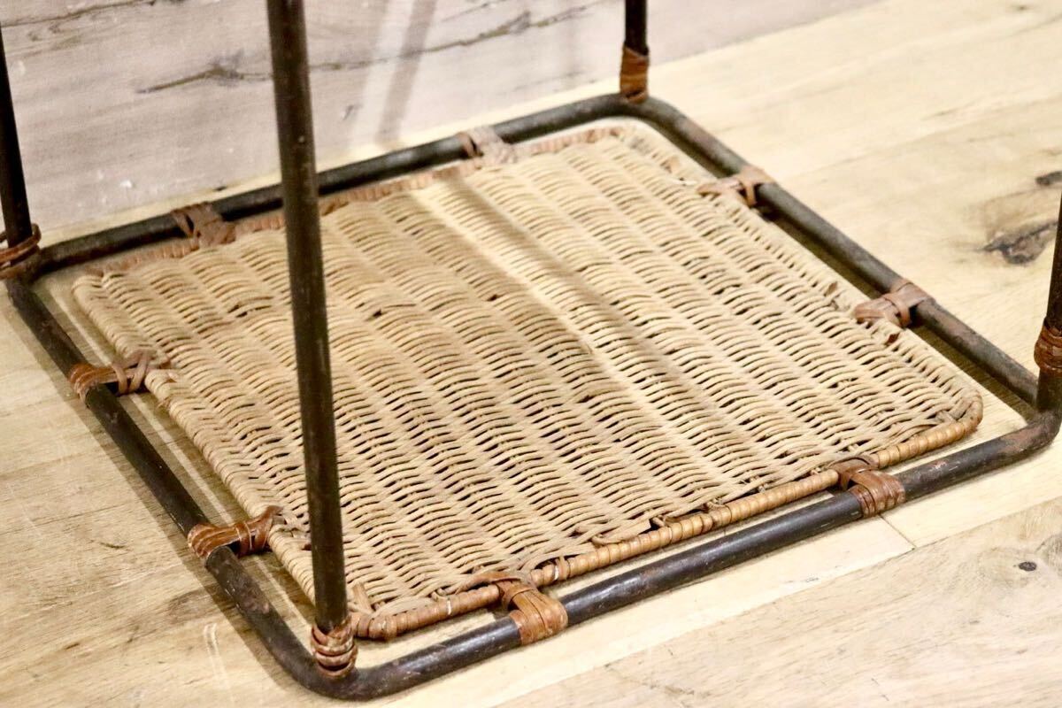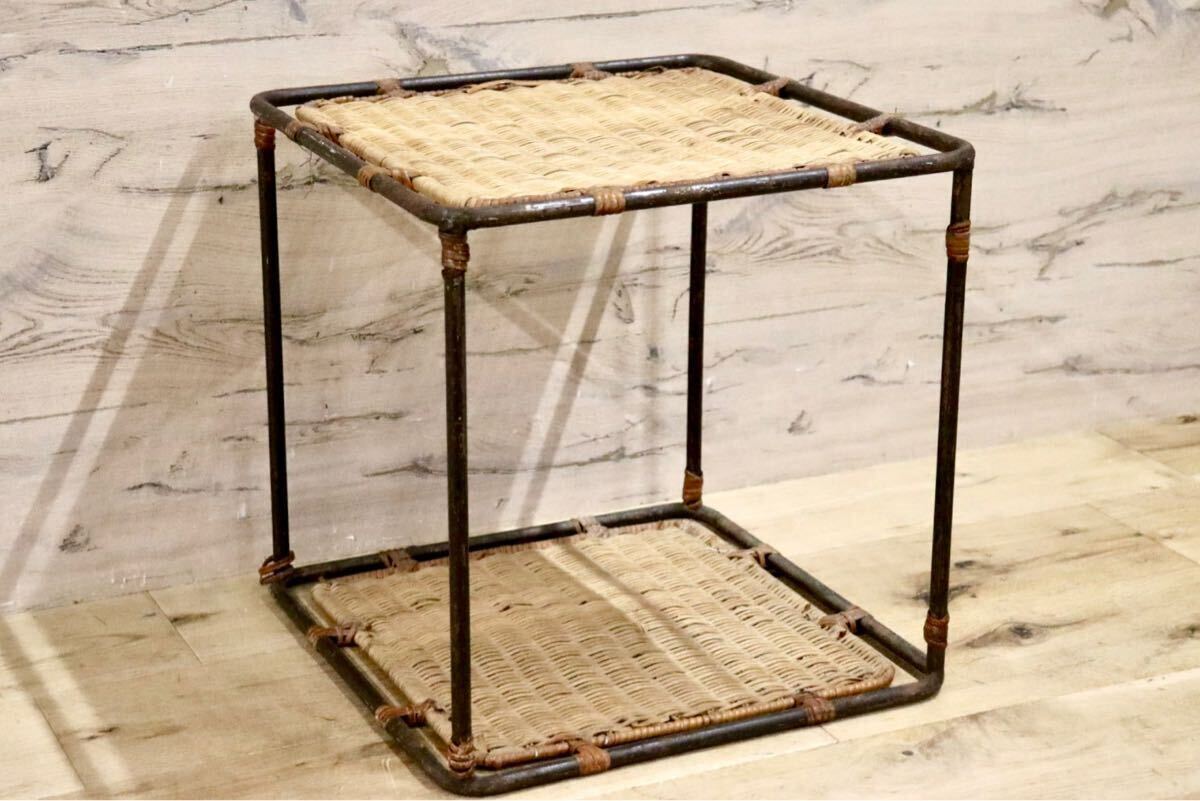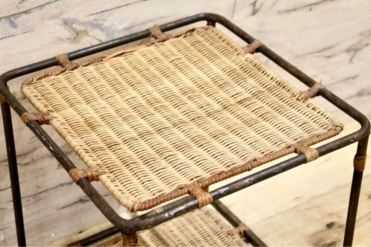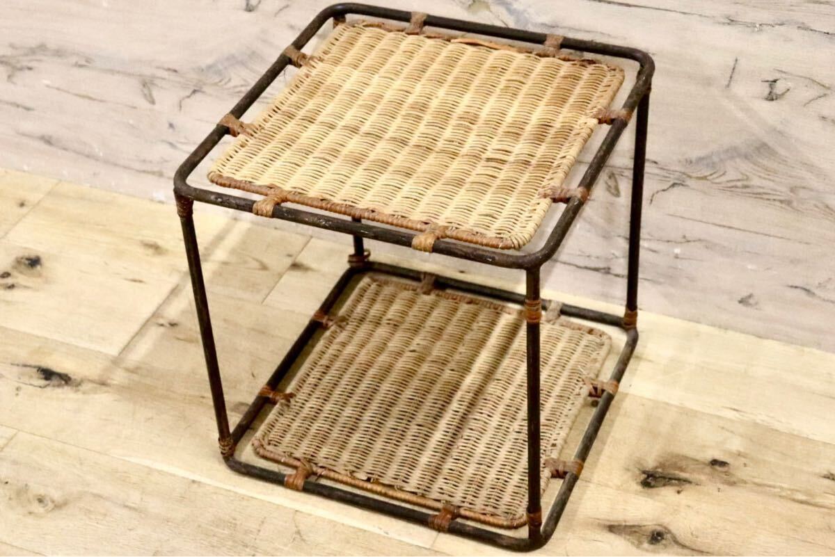 籐製の古いサイドテーブルです。北欧家具とも相性が良さそうでちょっとした小物置きに便利です。