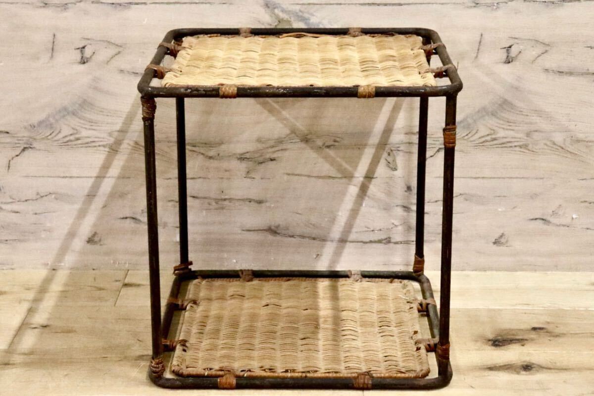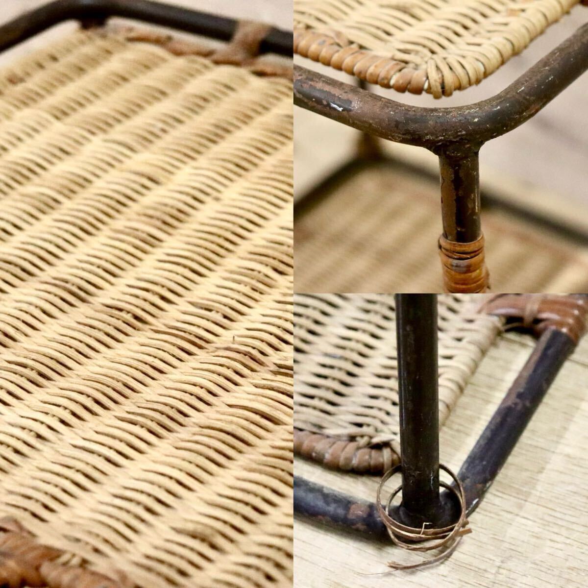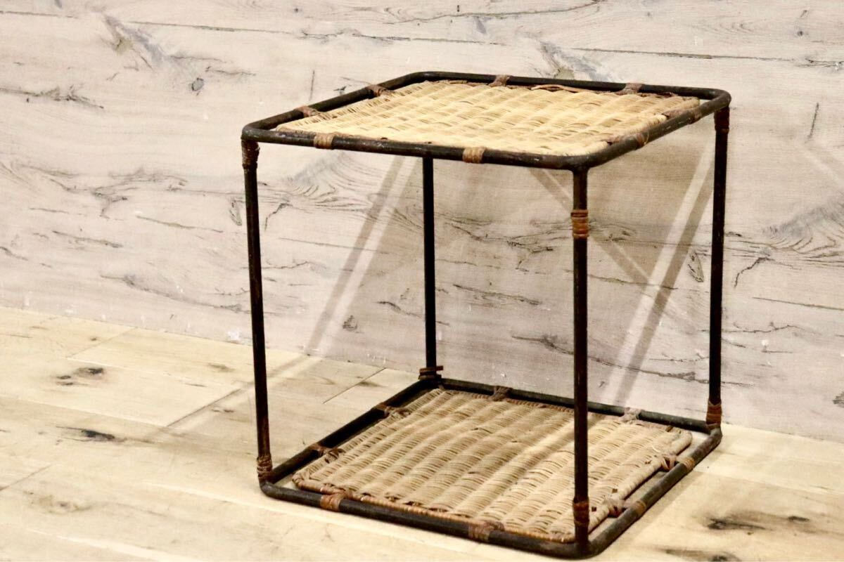 籐製の古いサイドテーブルです。北欧家具とも相性が良さそうでちょっとした小物置きに便利です。