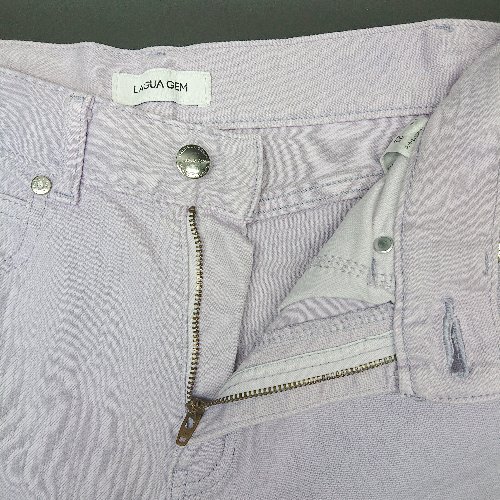 ◇ laguagem ラグアジェム チャックボタン閉め 無地 ジーンズ サイズ23 ラベンダー レディース E
