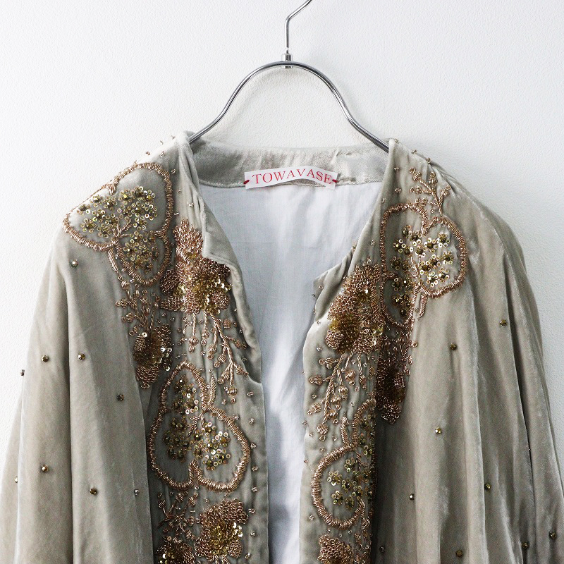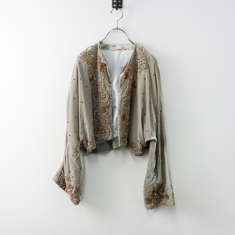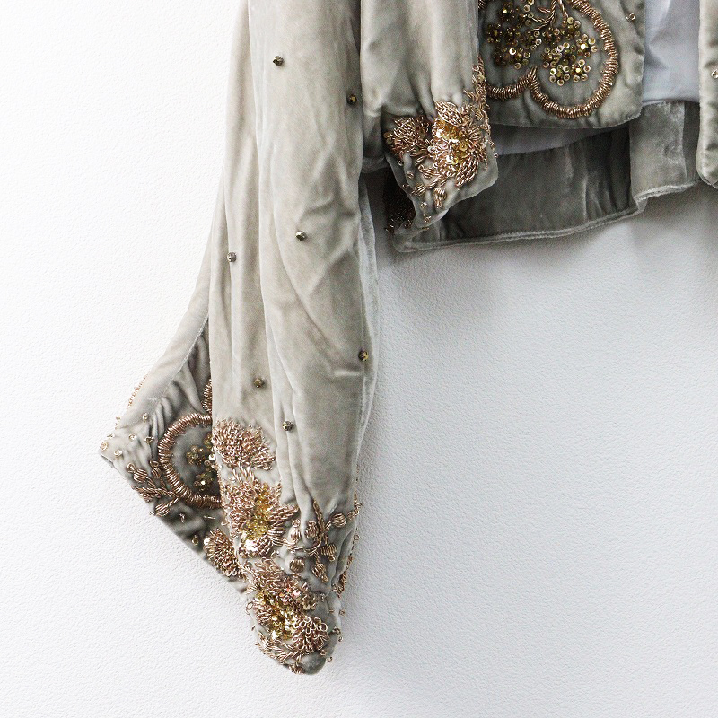 定価129800円 2022AW トワヴァーズ TOWAVASE 手刺繍 ベルベット素材 ZARI ザリジャケット グレー/ボレロ ショート丈【2400014231311】