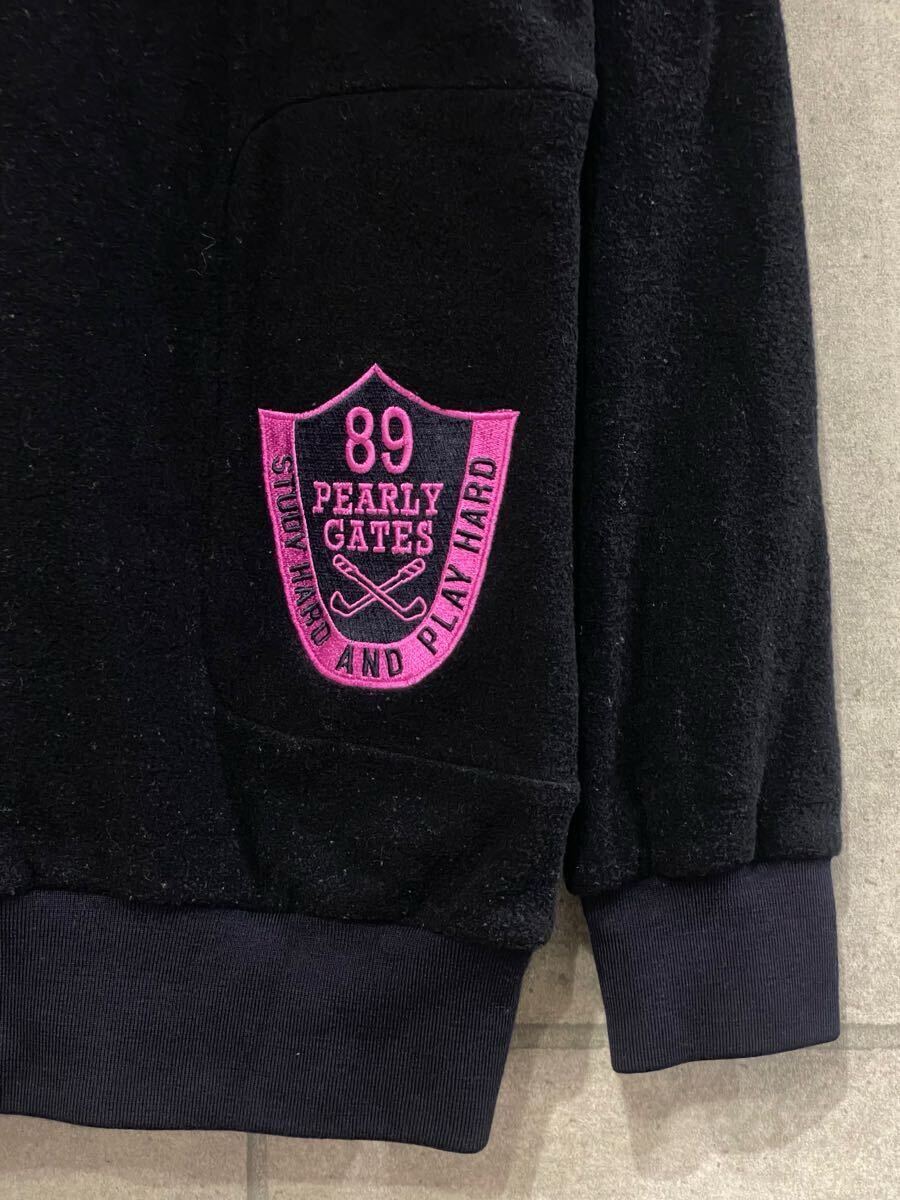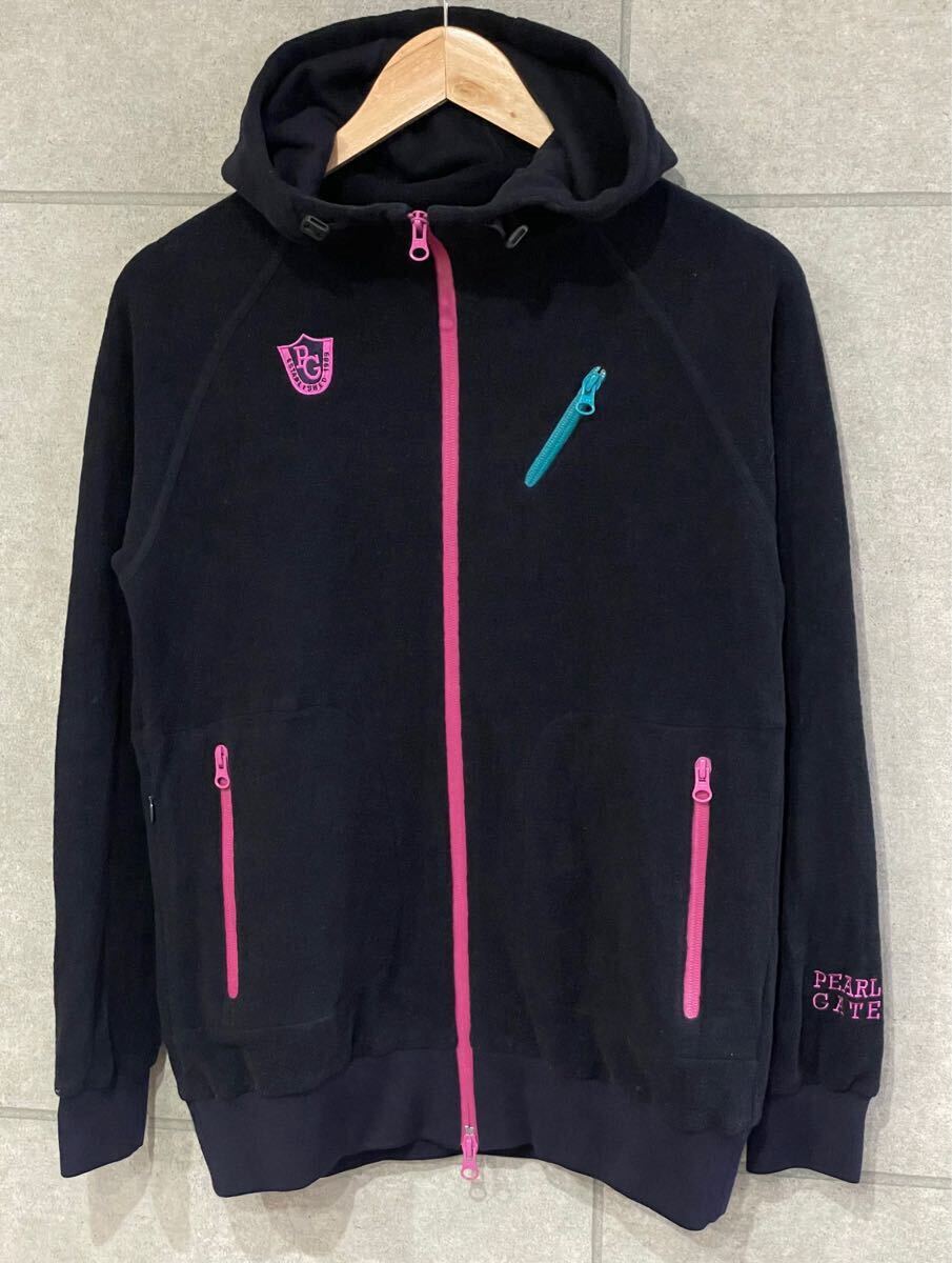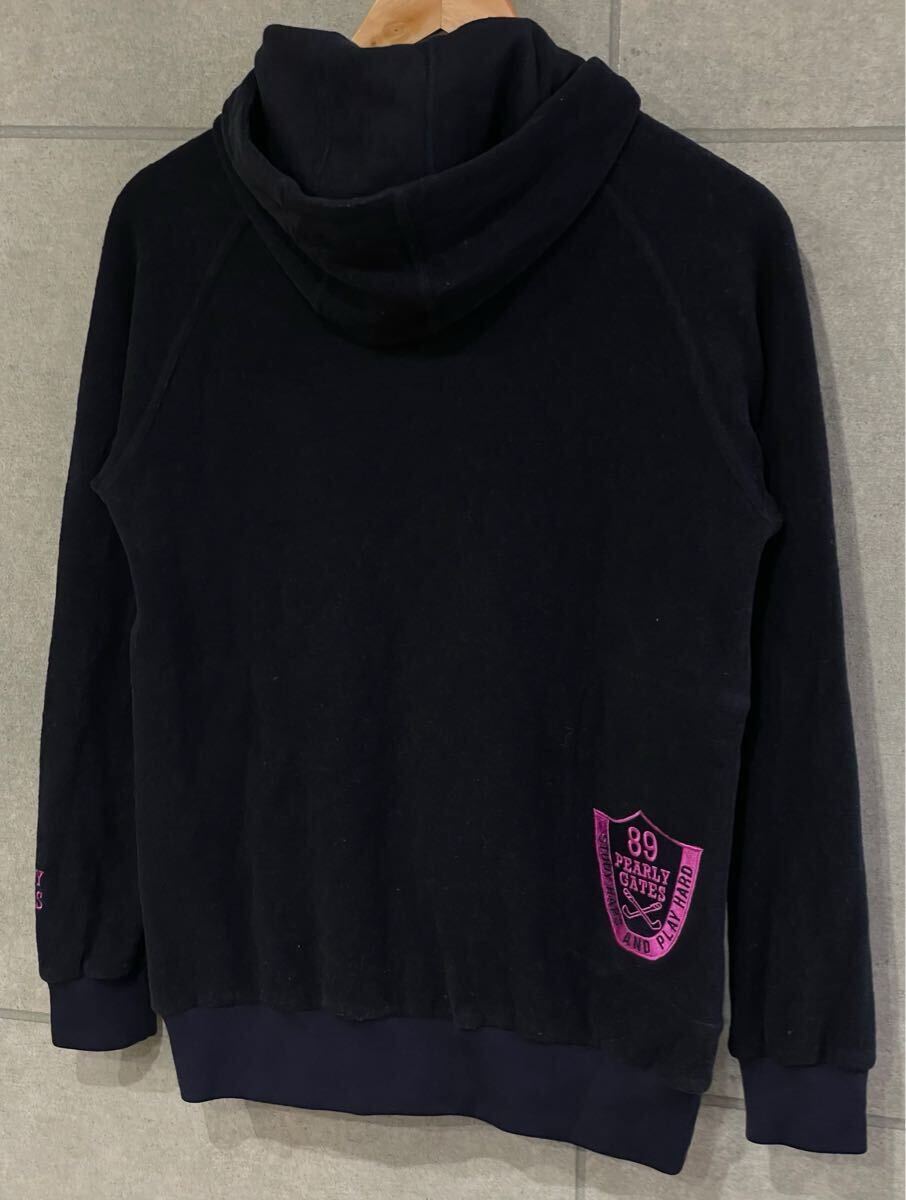 希少デザイン! PEARLYGATES パーリーゲイツ ウール混 フリース ジップアップ パーカー フーディ ネイビー 1サイズ ゴルフウェア ○ 新規×