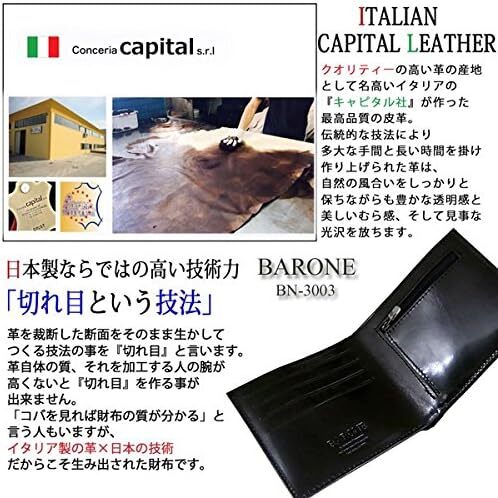 BARONE 【イタリアンレザー】 キャピタル社製イタリアンレザー メンズ 短財布 牛革 スーツ用極薄型ウォレット 本革 黒 (ブラック) バローネ