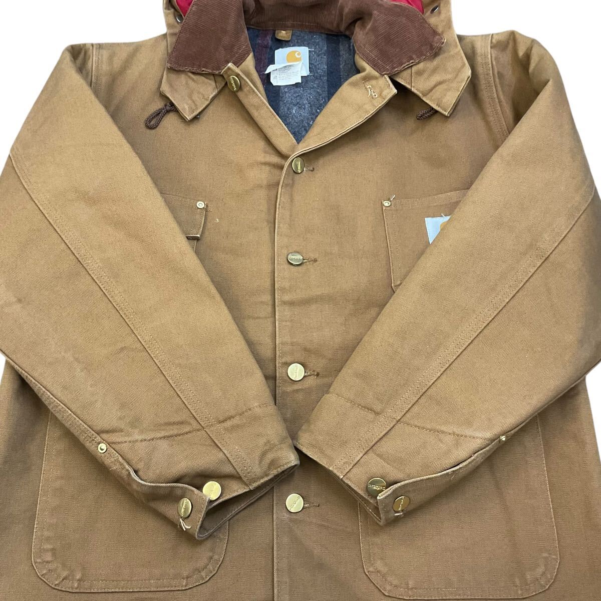 90s USA製 Carhartt チョアコート ダック地 フード付き ワンポイント ロゴ カバーオール ワーク カーハート ヴィンテージ