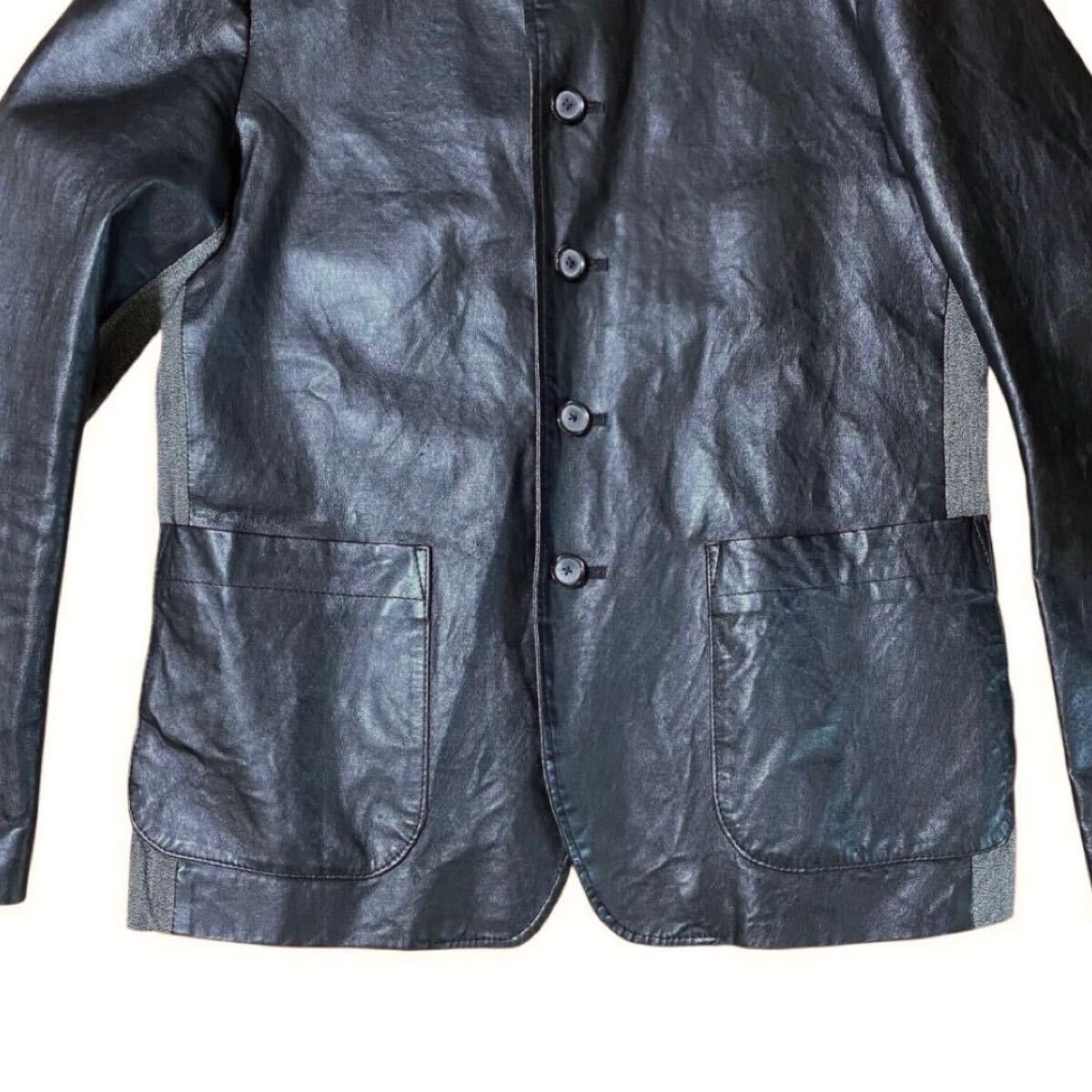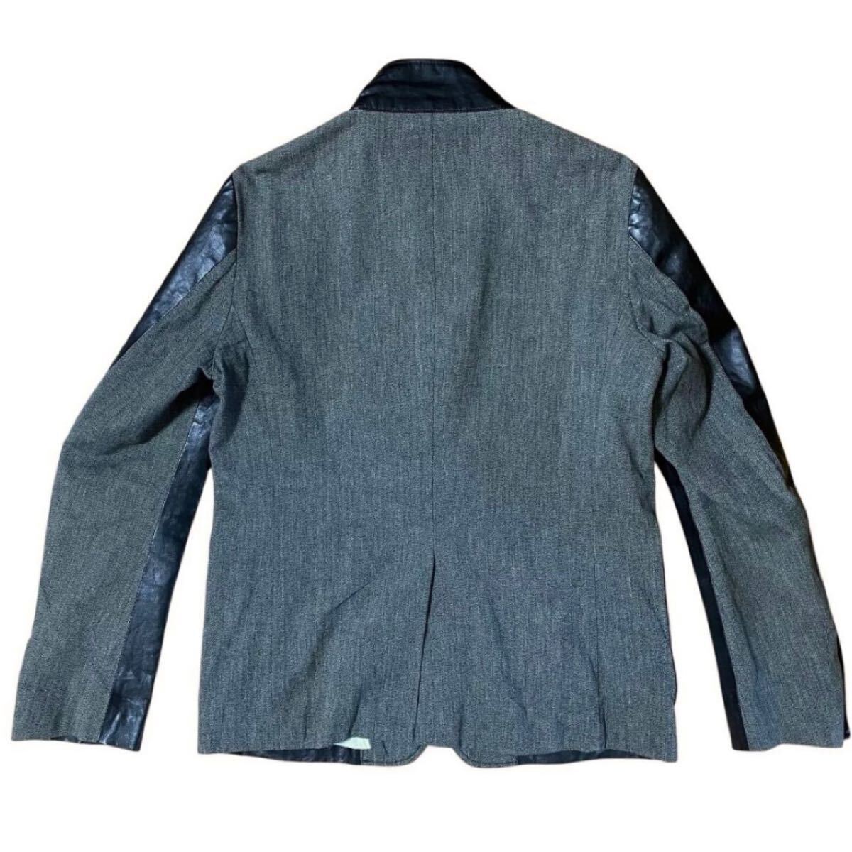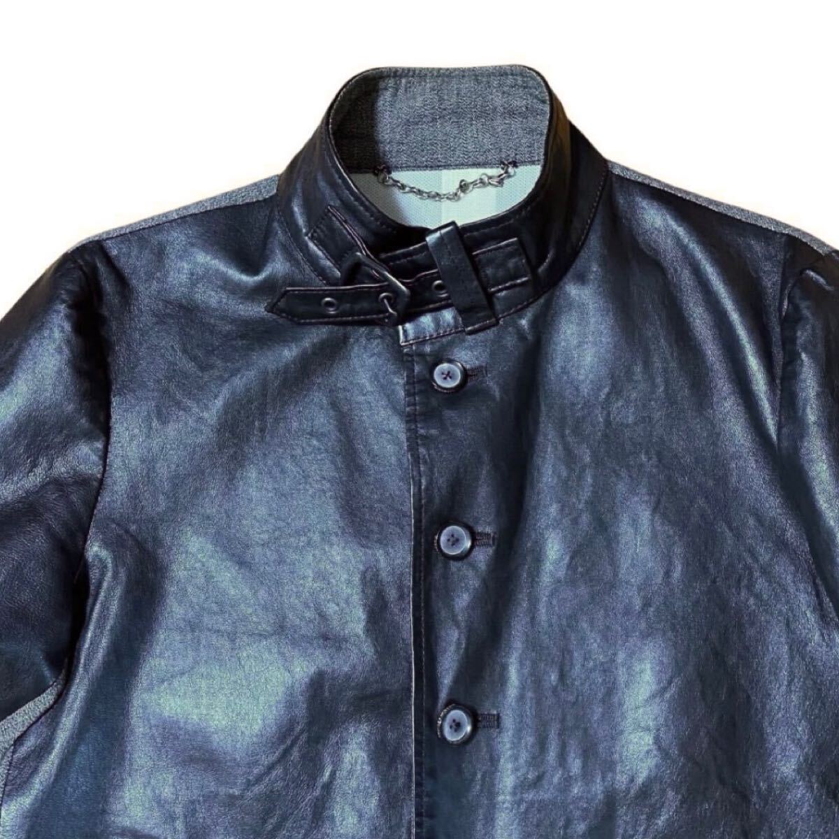 【ミハラヤスヒロ MIHARA YASUHIRO レザー × コットン ジャケット 長袖シャツ 44 羊革 アウター ブルゾン ブラック グレー ドッキング】