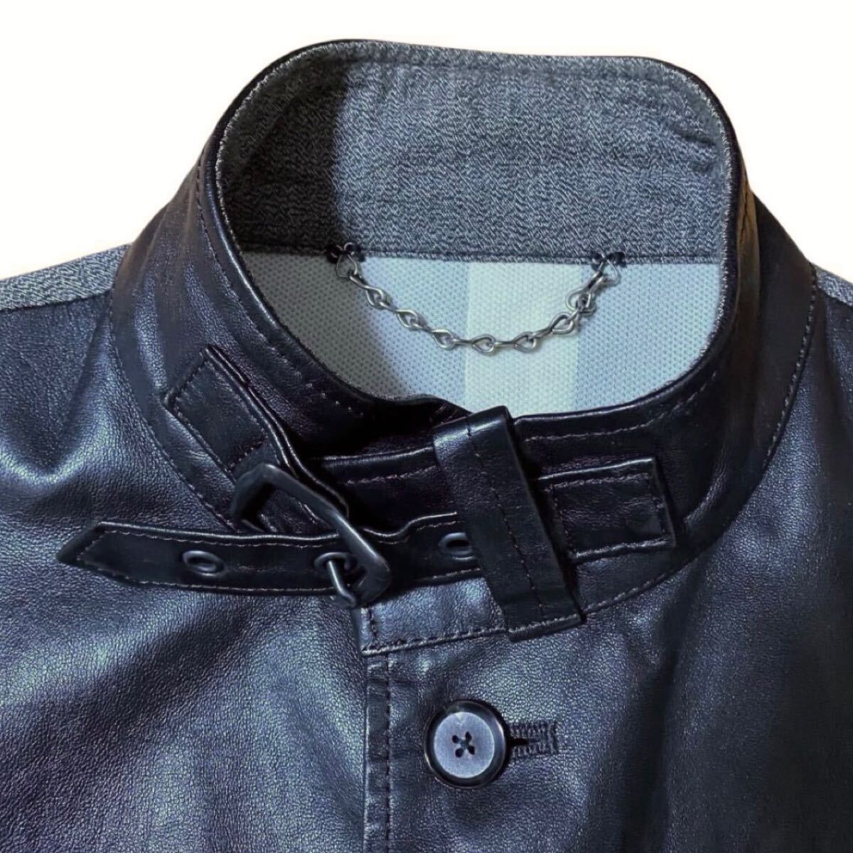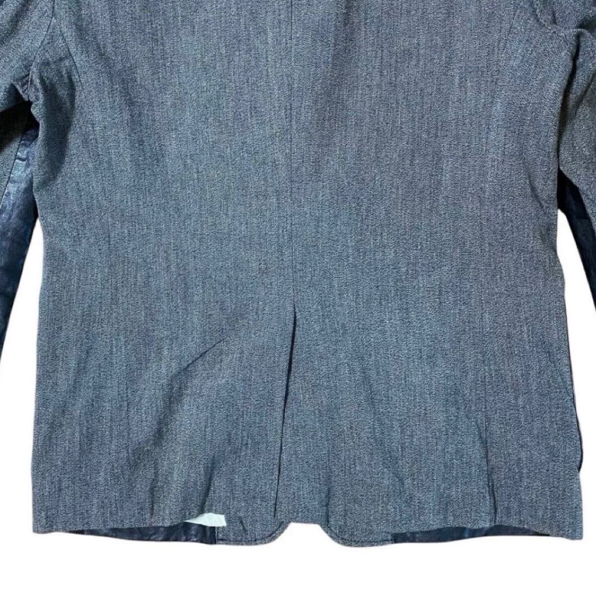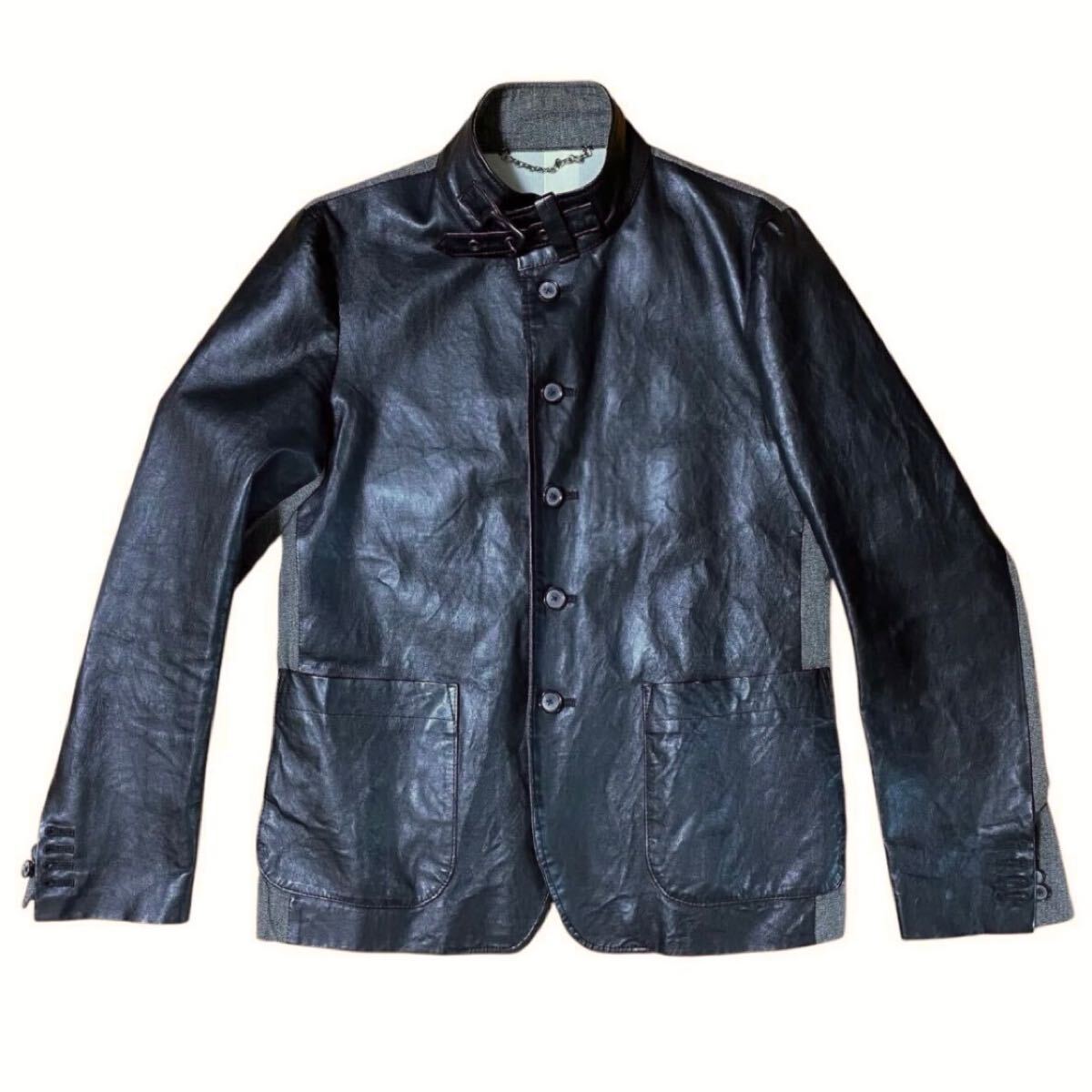 【ミハラヤスヒロ MIHARA YASUHIRO レザー × コットン ジャケット 長袖シャツ 44 羊革 アウター ブルゾン ブラック グレー ドッキング】