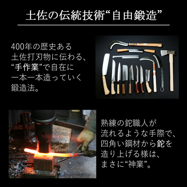 土佐屈指の鍛冶鉈による火造り鍛造品です