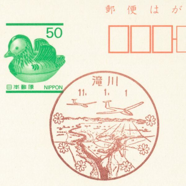 風景印☆初日☆北海道・滝川・H11.1.1・グライダー