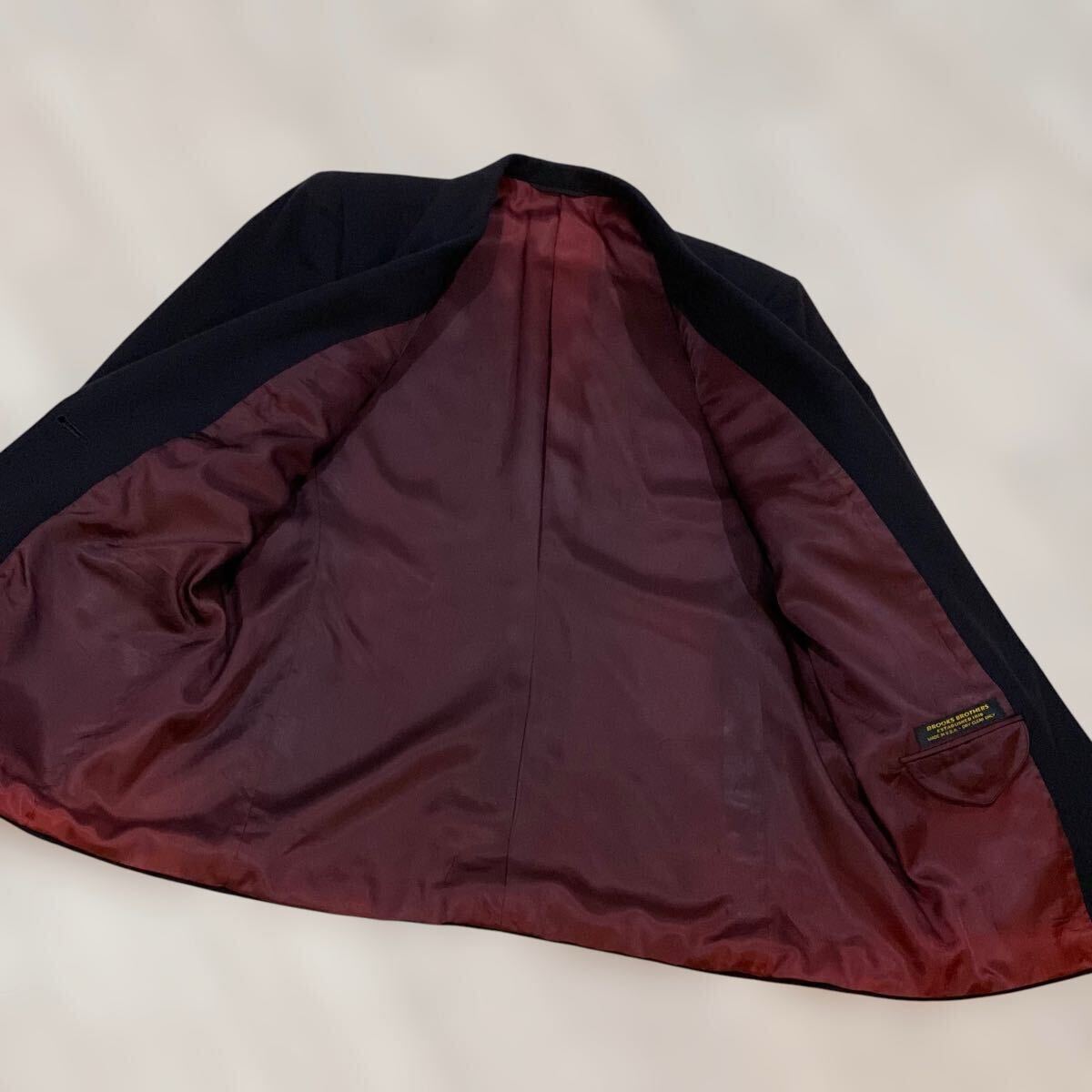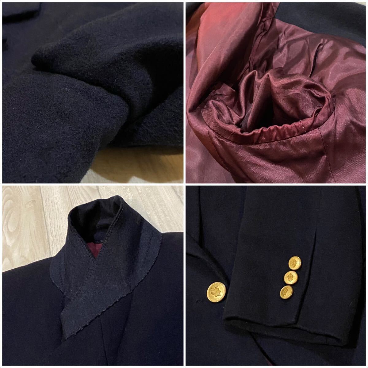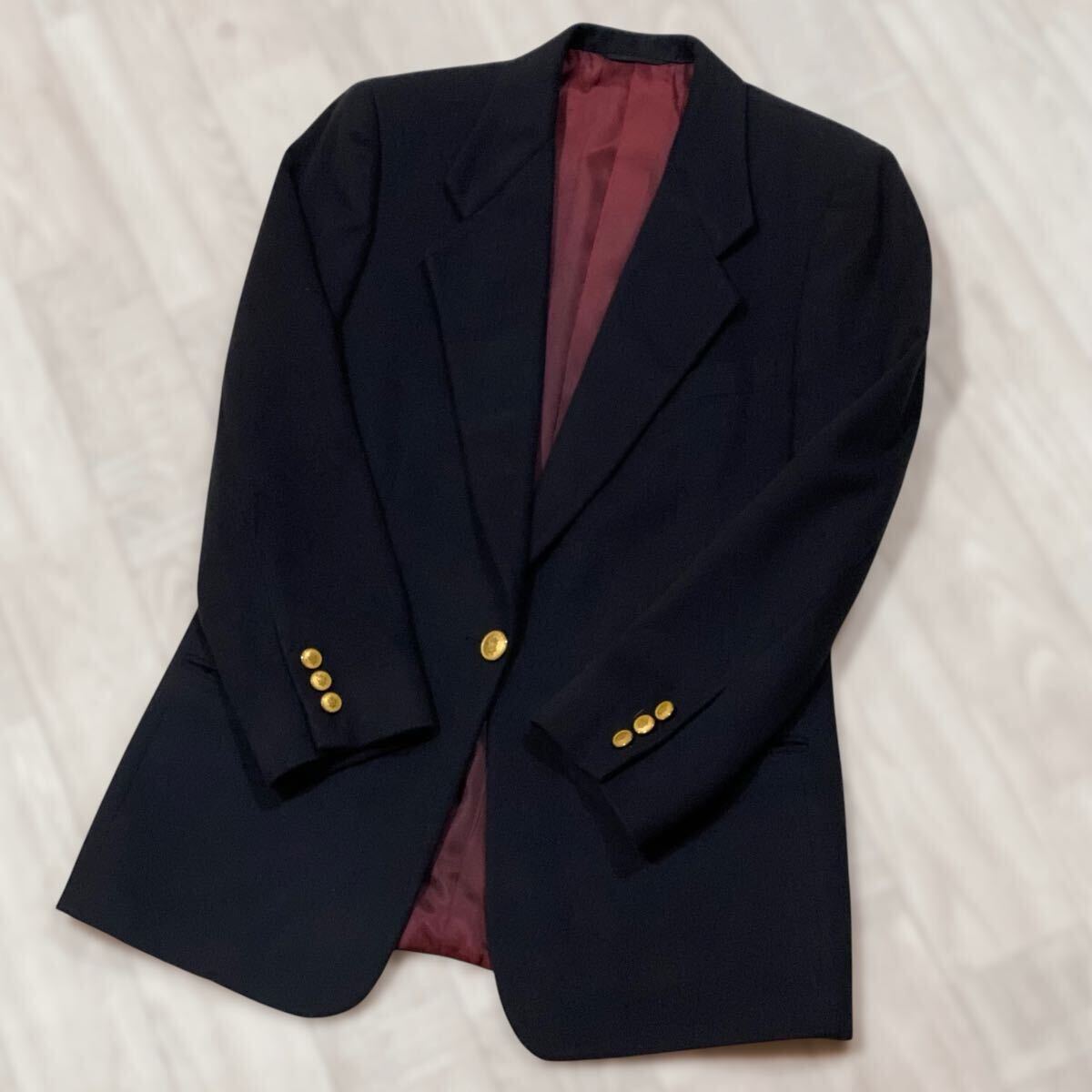 裏地は高級感のあるボルドーカラー、深みのある濃紺にゴールドボタンが映える上品な印象です。