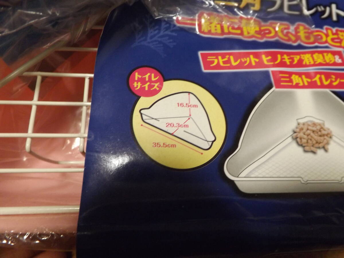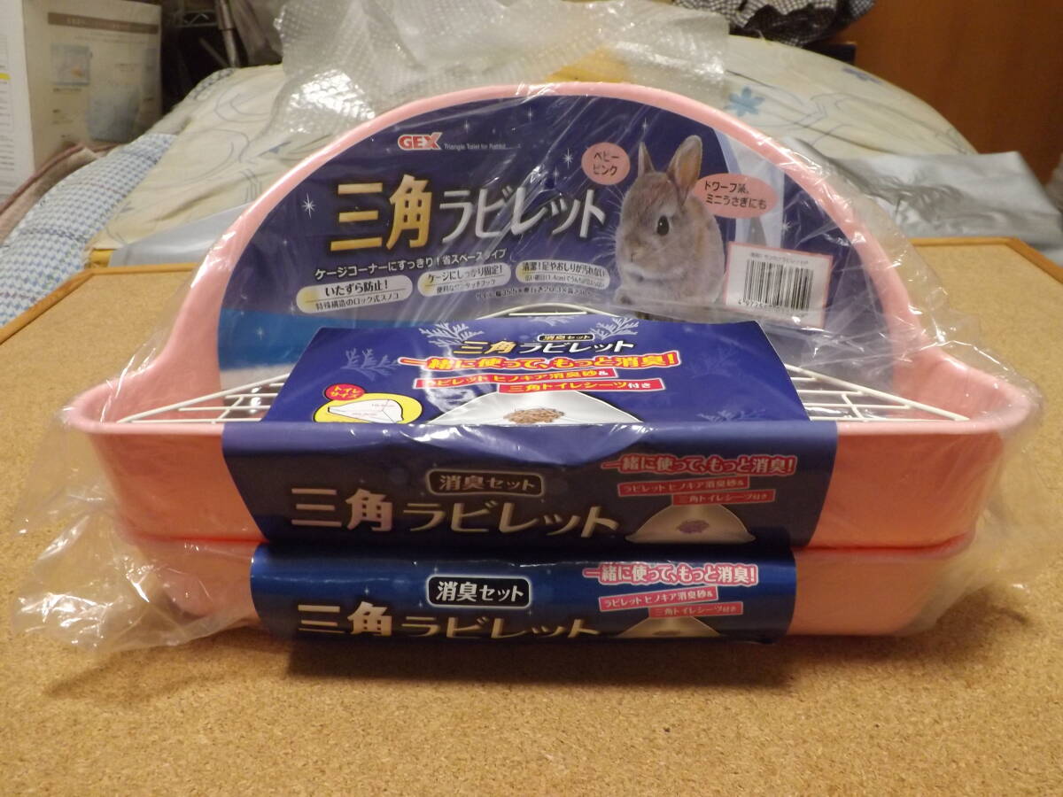 ■未開封.未使用品 GEX 《1種2品》小動物用トイレ 三角ラビレット 消臭セット ベビーピンク ケージコーナーにすっきり!省スペースタイプ「ラビレット 三角トイレシーツ2枚」と新しくなった「ラビレット ヒノキア消臭砂」が付いた消臭セット!詳細は画像.説明文で願致します