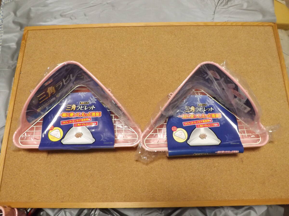 未開封.未使用●GEX●《1種2品set》●【三角ラビレット.消臭set】●ベビーピンク●ケージコーナー用●トイレシーツ2枚+ヒノキア消臭砂付き