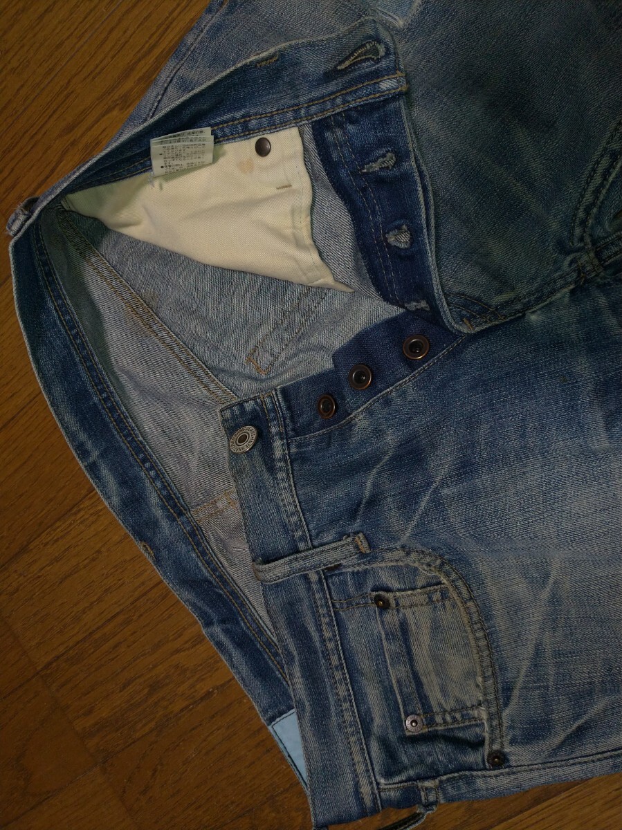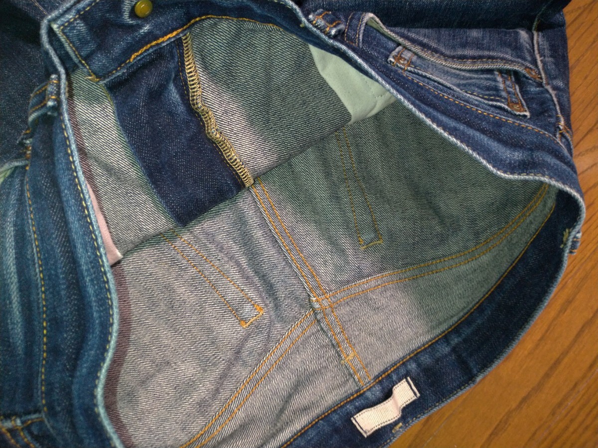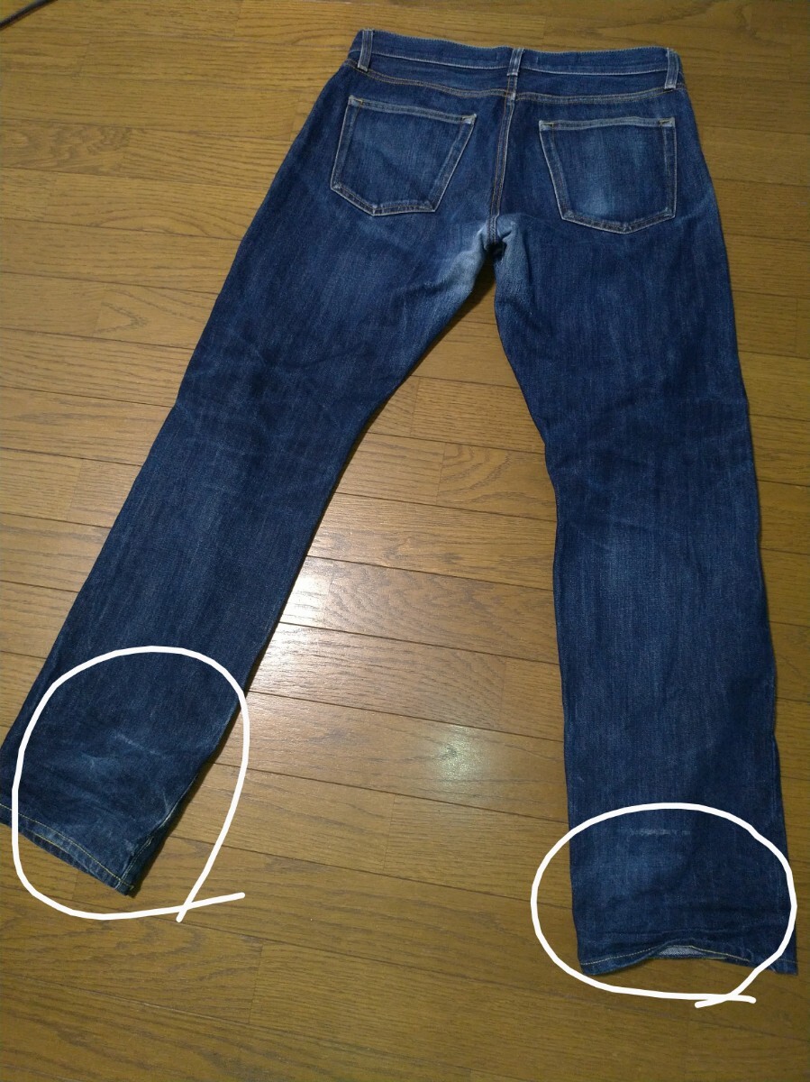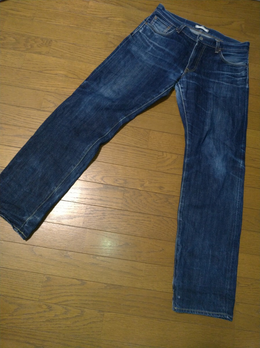 NIQLO ユニクロ カイハラデニム セルビッチ 赤耳 レギュラーフィット ストレート ウエスト32(82cm) USED加工 ヒゲ ハチノス加工 メンズ