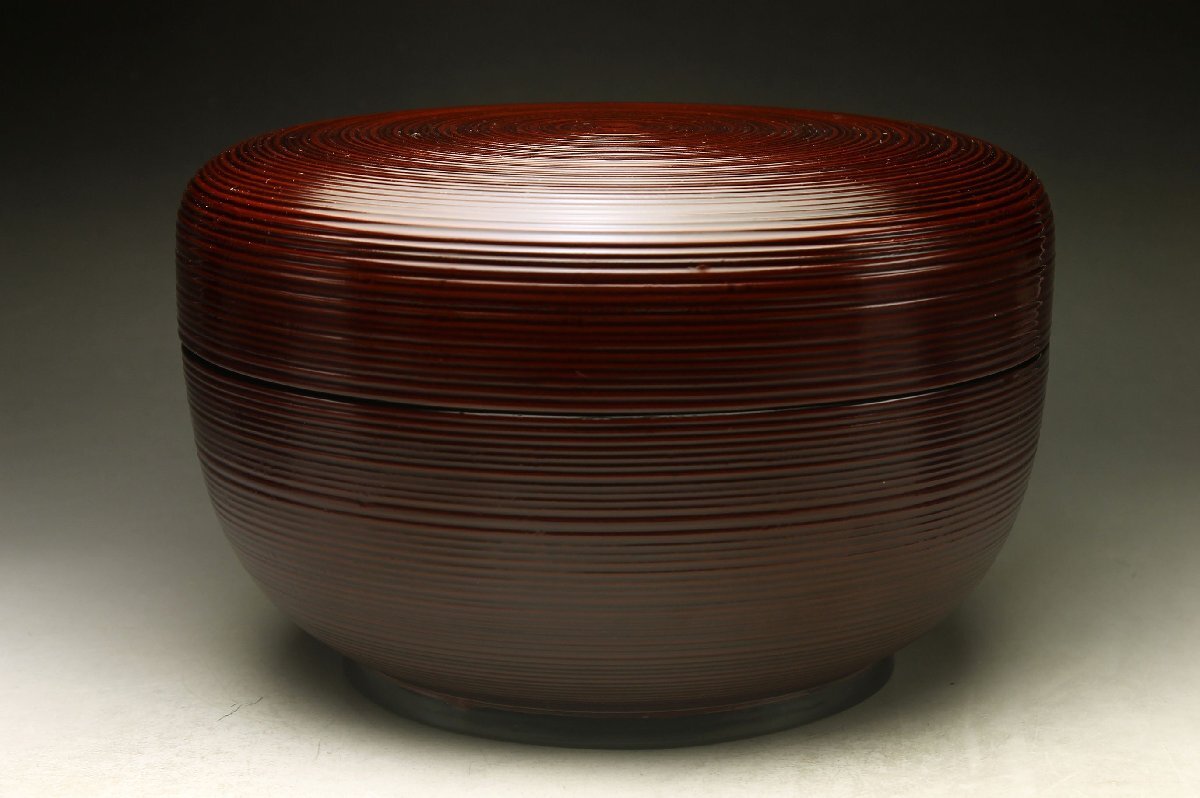 【余韻】 時代物 輪島塗 天然木製 漆塗 独楽 飯櫃★内蓋付 無傷美品<同梱可>