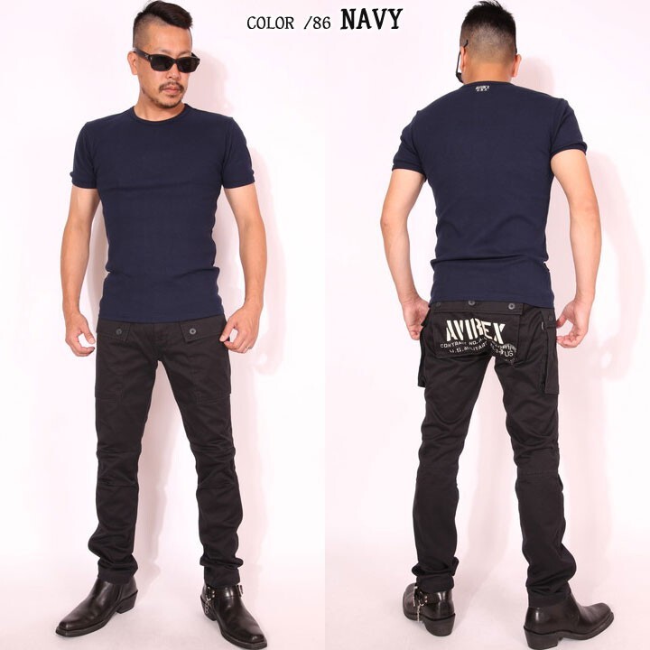 アビレックス AVIREX 半袖 Tシャツ クルーネック 無地 デイリーウエア 6143502 ネイビー【XLサイズ 】